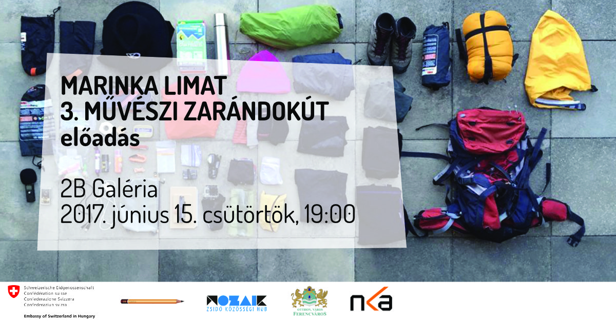 A 3. Művészi zarándokút a leghosszabb és legambiciózusabb projekt, amelyet Marinka Limat a mai napig művészi karrierjében vállalt. 163 nap alatt 9 országban 2500 kilométert tesz meg. A kiindulópont Kassel, a Documenta művészeti kiállítás otthona, a célállomás pedig Athén, a nyugati kultúra bölcsője. A Documenta14 - amely 2017-ben első alkalommal két helyszínen zajlik - teljes időtartama alatt, Marinka Limat úton lesz a két város között, és lépteivel kapcsolja őket össze. Az út Kelet-Európán és a Balkánon át, az egyik érdekes művészeti helyszíntől a másikig vezet. A svájci művész ezen az estén a 2B Galériában pihen meg.