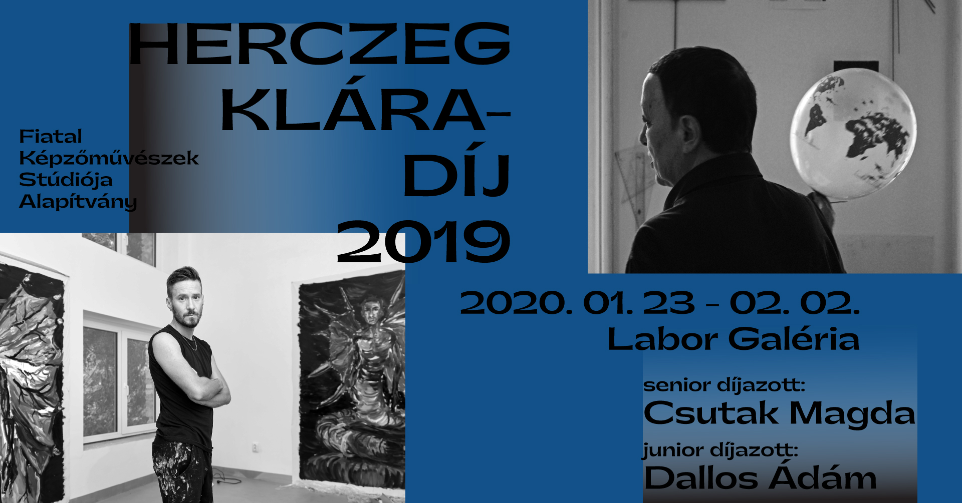 A Fiatal Képzőművészek Stúdiója Alapítvány szeretettel várja a 2019-es Herczeg Klára-díj átadásán, valamint ezzel egybekötve Csutak Magda szenior díjazott és Dallos Ádám junior díjazott közös kiállításának megnyitóján.