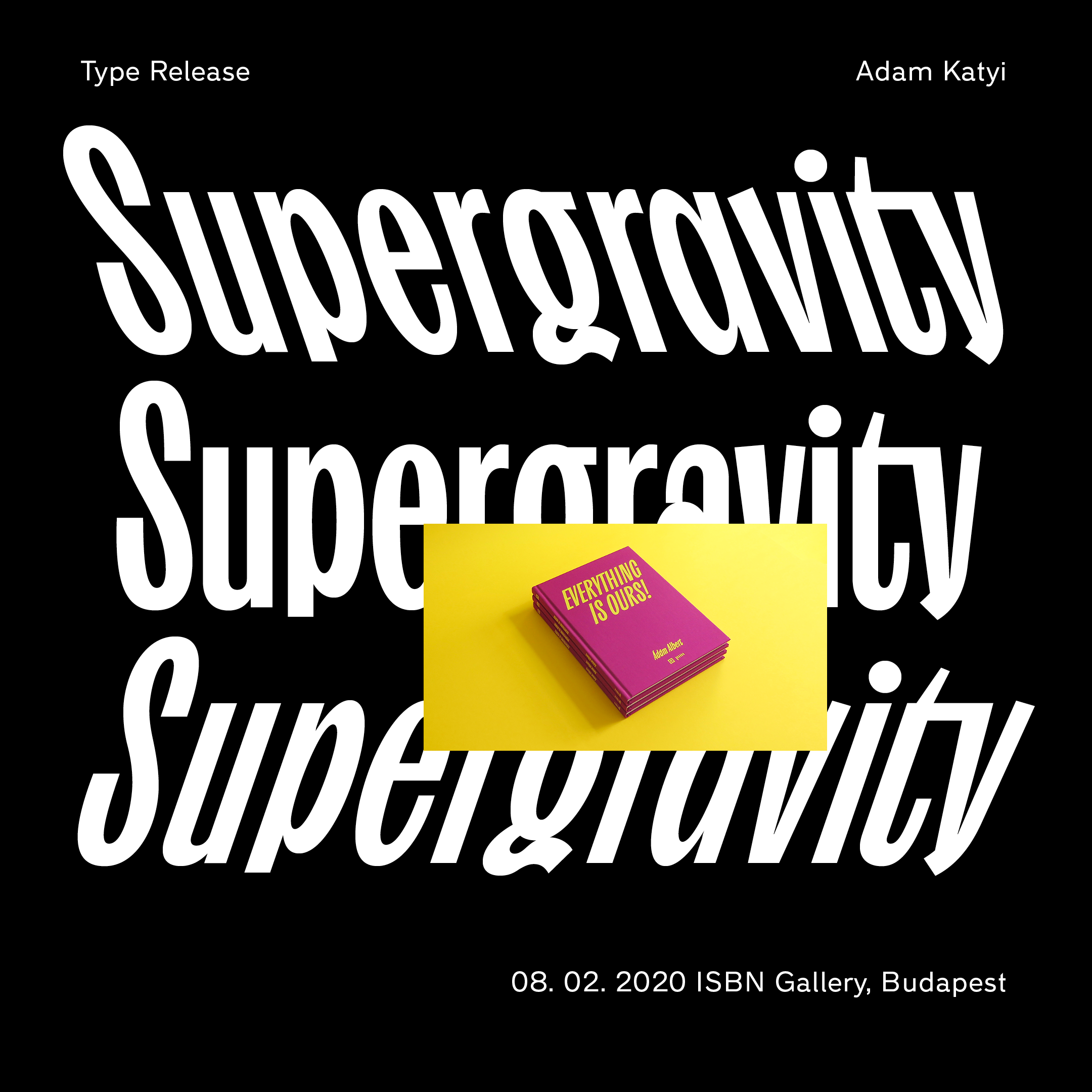 A Supergravity című kiállítás bemutatja a kötet és a két évvel ezelőtti tárlat grafikai hátterét, körüljárható lesz a komplex tervezési folyamat, az első vázlatoktól, layoutoktól kezdve az elkészült nyomdai termékig. Az ISBN könyv+galériában látható kiállítás különlegessége, hogy a kész arculat elemein túl, láthatóak lesznek a tervezés mellékvágányai is és a meg nem valósult ötletek.