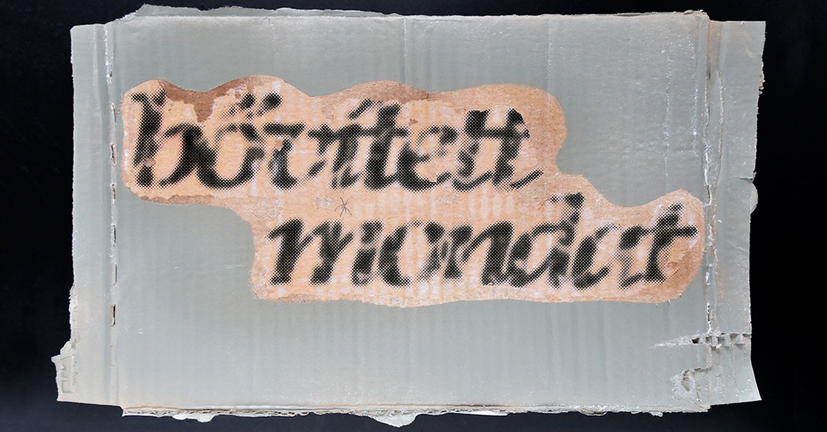 A kiállítás címeként olvasható BŐVÍTETT MONDAT jelen esetben nem egy nyelvtani szituációt jelöl, hanem egy keresési folyamatra utal, ami egy térbeli gesztusban nyilvánul meg. Azonos szerkezetű, de jelentésében különböző "szövegképeket" láthatunk. Van egy alap mondat, a maga hűvös, érzéketlen valójában: VALAMIT TENNI.