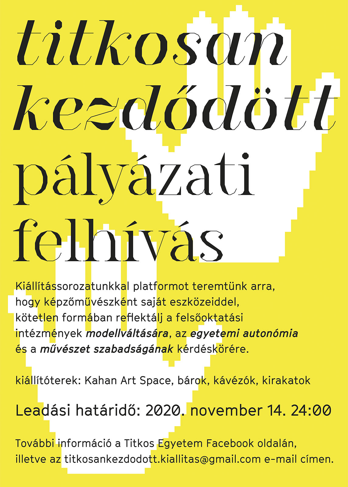 Pályázatot hirdetünk kiállítássorozatunkon való részvételre, mellyel platformot teremtünk arra, hogy a képzőművészet nyelvén reflektálj a felsőoktatási intézmények modellváltására és általánosságban az egyetemi autonómia és a művészet szabadságának kérdéskörére.