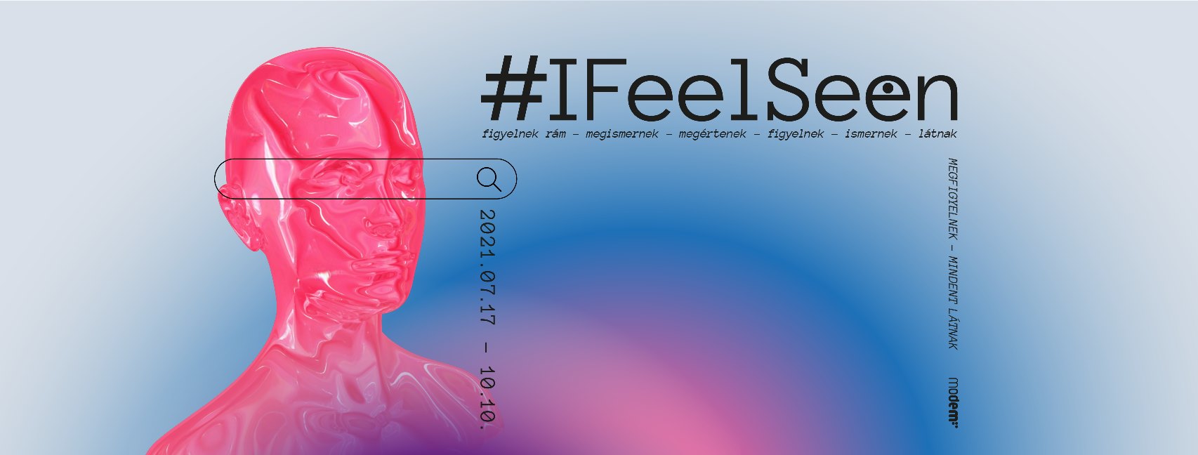 Ezeket az állapotokat ragadja meg a kiállítás címe is: az #IFeelSeen (azaz kb. figyelnek rám, ismernek, a vesémbe látnak) hashtaget főként olyan szituációkban használják a felhasználók, amikor egy jellemzően vicces példában önmagukra ismernek – mintegy jelezve: lebuktam, én is szoktam ezt csinálni. A kifejezés ugyanakkor egyéb jelentéseket is hordoz magában: egyszerre utalhat arra a boldog állapotra, amikor az ember végre úgy érzi, tartozik valahová, szabadon megmutathatja valós énjét, ugyanakkor azt a baljós és kissé paranoid érzetet is megidézi, amely akkor jelentkezik, amikor úgy érezzük, valaki figyel bennünket. A csoportos kiállításon fiatal magyar képző– és médiaművészek munkáin keresztül többek között az összeesküvéselméletek és a megfigyelési kapitalizmus, az eszközeinkhez fűződő, fétisbe hajló viszony, az agresszió és zaklatás, a közösségi média által újradefiniált testkép, az online térben átalakuló kapcsolatok módozatai vagy épp az eszképizmus kérdései kerülnek górcső alá.