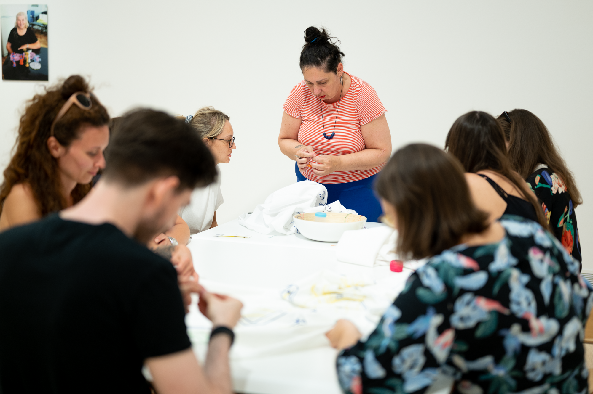 A program során az alkotó kedvű látogatók a művésszel együtt hímezhetik az általuk kitalált mintákat, részt vehetnek abban a művészi folyamatban, amelynek eredményeképpen egy saját kezünkkel hímzett, rólunk szóló falvédő készül el.