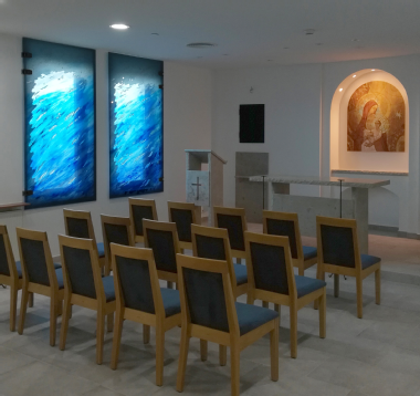 Fotók // A budakeszi Kalkuttai Szent Teréz Anya Kórházkápolna Fűri Judit üvegművész alkotásával.