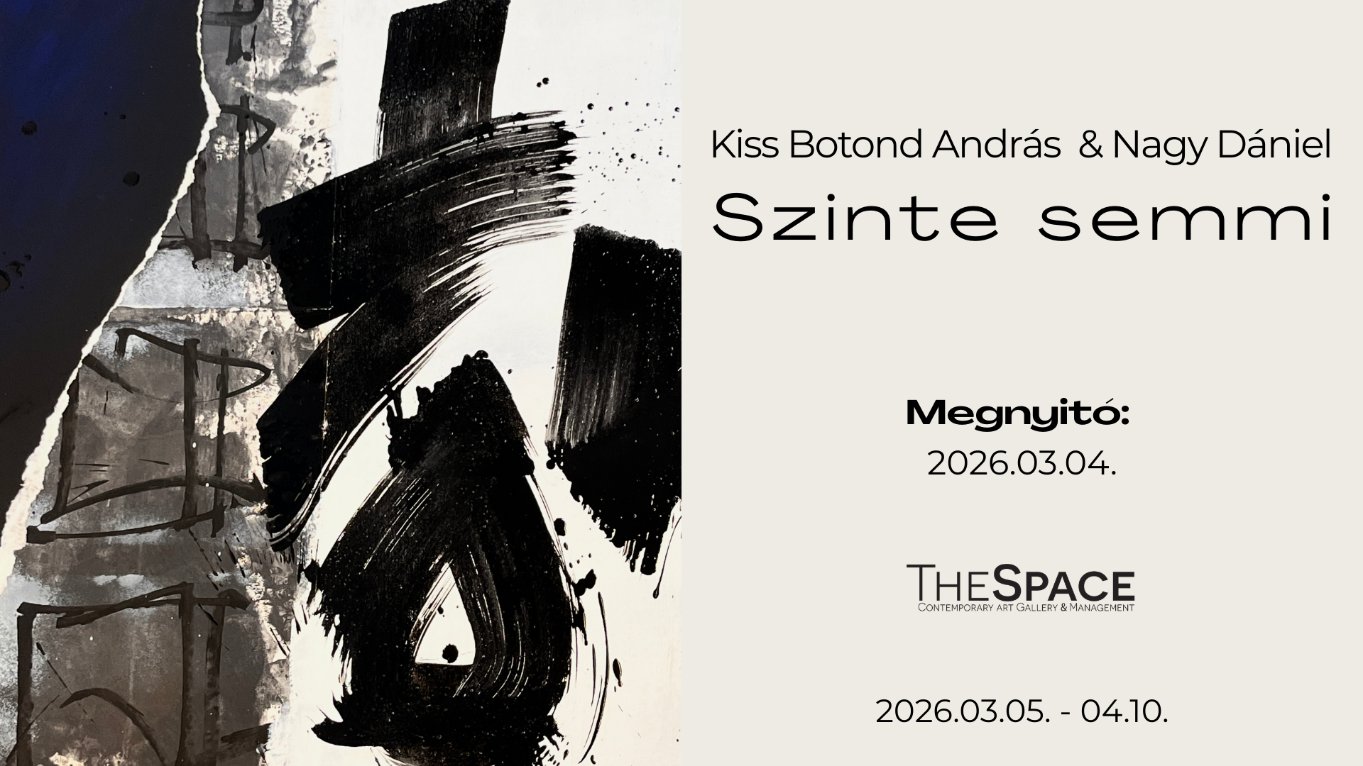 A Szinte semmi című kiállítás két eltérő médiumon keresztül vizsgál alapvető és időtlen művészeti problémákat: hogyan válik a felület képpé, az anyag formává, a gesztus pedig jelenlétté. Kiss Botond András grafikái és Nagy Dániel szobrai nem csupán formai párhuzamok mentén kapcsolódnak, kérdésfelvetéseikben a festészeti és szobrászati gondolkodás határait teszik átjárhatóvá. Munkáikban különböző formanyelvek, anyagi minőségek és vizuális tradíciók szintetizálódnak olyan közös horizonton, ahol maga a médium működése válik vizsgálat tárgyává.