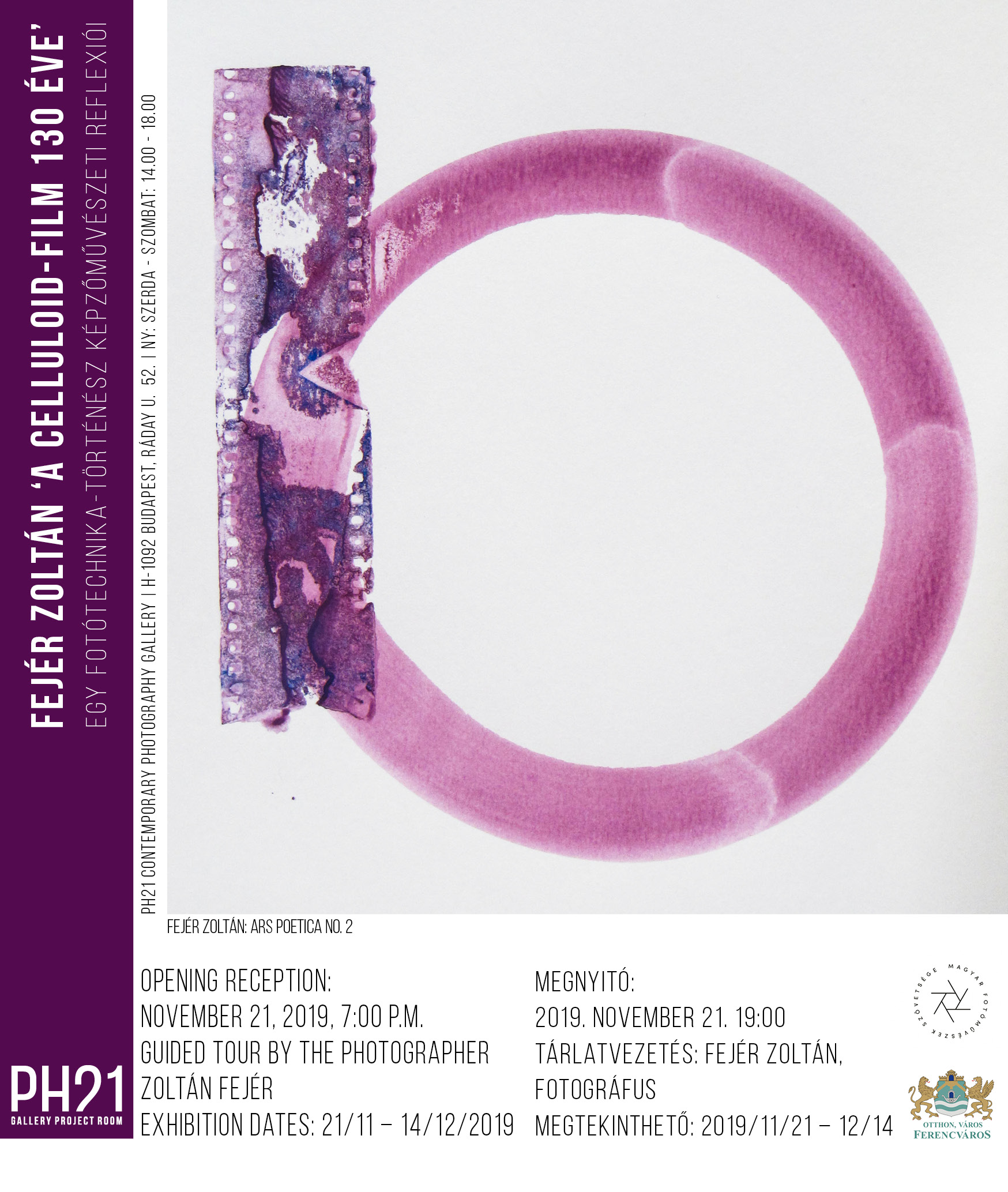 A kiállítás Fejér Zoltán húsz alkotását tárja a nézők elé. A fotogram, cliché verre, kemogram eljárásokkal, fotópapírra készült alkotásokat készítőjük tintával és temperával festett klexográfiái egészítik ki. Jelen tárlat a 35 milliméteres, kétoldalt perforált celluloid film 130 éves jubileumára reagál. Minden alkotáson megjelenik maga a téma: a film mint nyersanyag. Először Thomas Edison használta a kinetoszkópjában; majd pedig erre készítették – a következő százharminc évben – a némafilmeket, a művészfilmeket, a háborús híradókat, a dokumentumfilmeket, valamint az elektronikus képrögzítés elterjedéséig a riportfényképeket és az amatőrfotók milliárdjait.