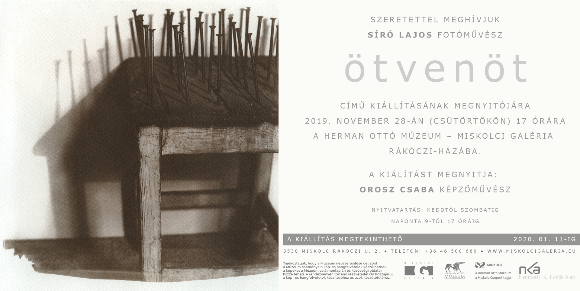 Az ötvenötödik születésnapját ünneplő fotográfus kiállításfolyamának első állomása a debreceni b24 Galéria volt. Ez követte Tiszaújvárosban a Derkovits Művelődési központ, és most november 28-tól a Miskolci Galéria.