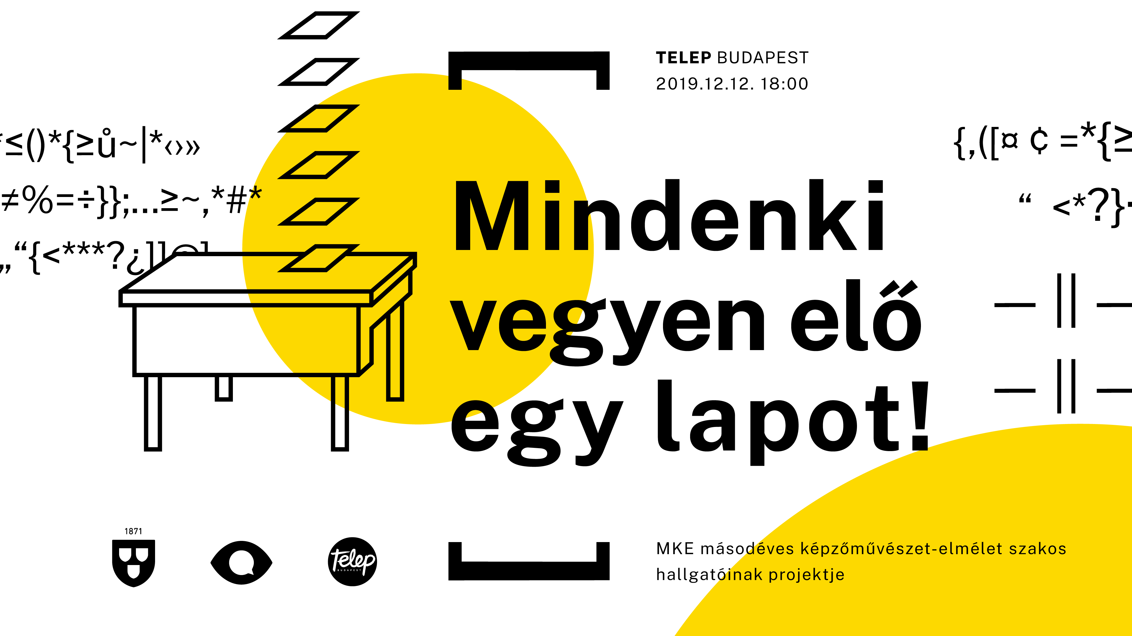Mindenki vegyen elő egy lapot! | Asztalos Zsolt, Balogh Viktória, Barna Orsolya & Pálinkás Bence György, DEMOLAB, Lődi Virág, Pólya Zsombor, Szemző Zsófia, Tóth Márton Emil