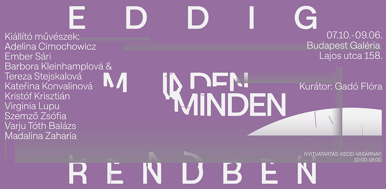 Majdnem három hónapos késéssel tud megnyílni a Budapest Galéria következő kiállítása, az Eddig minden rendben, amely mindennapi szorongásainkat, a teljesítménykényszert, a munkából fakadó kiégést, valamint az erre való reakciókat vizsgálja. A kiállítás előkészítésekor senki sem gondolta, hogy egy világjárvány megjelenésével ezek a helyzetek és érzetek még jobban kiéleződnek. A koronavírus hatására a mókuskerék sokak számára leállni kényszerült – megakasztva munkafolyamatokat és elbizonytalanítva megélhetéseket, – mások számára pedig még jobban felgyorsult, és sokan egy újfajta szorongással találták magukat szemben. Meghatározó tapasztalttá vált, hogy féltünk az ismeretlentől, a kiszámíthatatlantól, attól, hogy nem tudtuk, meddig fog tartani ez az állapot. Sokakban felmerülhetett, hogy visszaállhat-e a “normális” élet, és mit nevezhetünk majd ezentúl normálisnak? Most, hogy a fokozatos enyhítésekkel ismét egy megváltozott helyzetbe kerültünk, fontossá válhat az a kérdés, hogy miként tekinthetünk azokra az élethelyzetekre, amelyek eddig sem voltak problémamentesnek nevezhetőek. A munkák, noha jóval a koronavírus megjelenése előtt készültek, mégis számos olyan nehézségre mutatnak rá, amelyek az elmúlt hónapokban még jobban előtérbe kerültek vagy új jelentésrétegekkel gazdagodtak. A kiállítás címe ironikusan fordítja ki az ismert film mondatát, hiszen azt eddig is sejtettük, hogy semmi sincs rendben, de most már talán beszélni is tudunk róla.