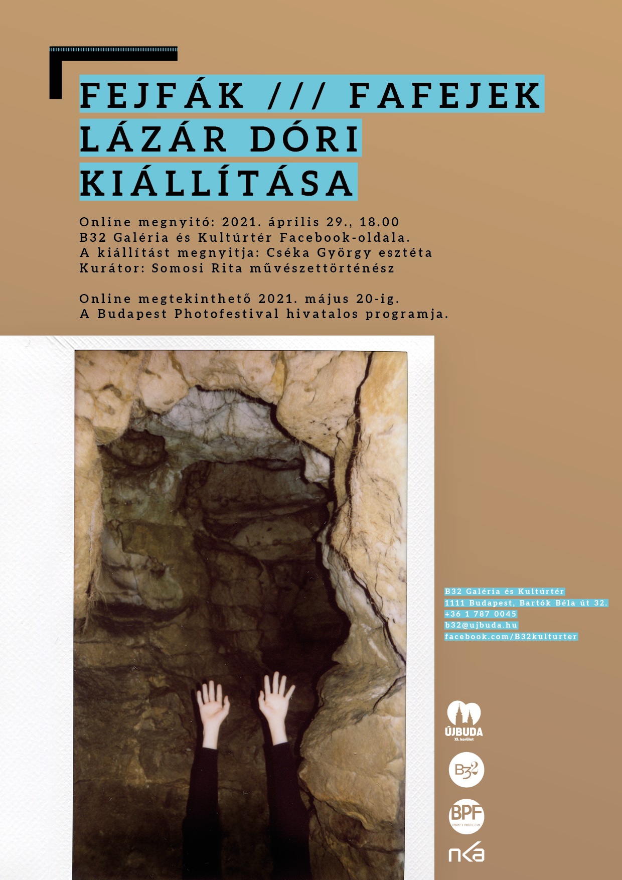 Lázár Dóri FEJFÁK/FAFEJEK c. kiállításának online megnyitója a B32 Galéria és Kultúrtér Facebook-oldalán tekinthető meg 2021. április 29., csütörtök 18.00 órától. A kiállítást megnyitja: Cséka György esztéta.