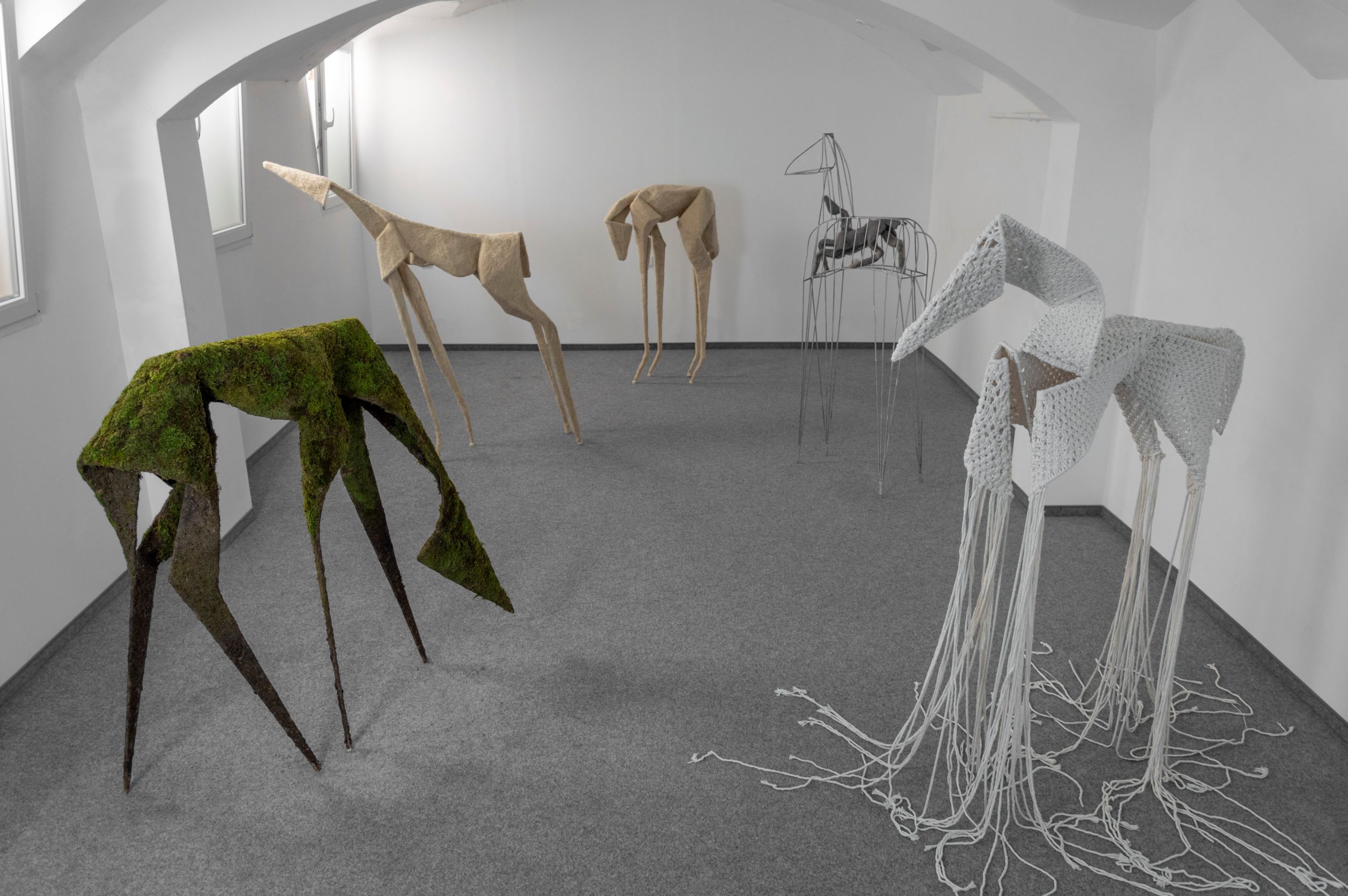 A K Galériában látható Panel Póni Projekt című kiállítás Demcsák Dóra Vanda elmúlt évben készített új sorozatát mutatja be. A plasztikák anyagában a művész az acél és a gyapjú ötvözésével kísérletezik, és a tömeges magány gondolatára, a természettől és gyökereinktől való eltávolodásra, illetve a nagyvárosi lakásba száműzött, kapcsolatok nélküli közelmúltra reagál