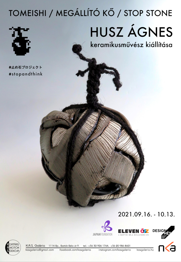 Husz Ágnes japánban élő, magyar keramikus művész TOMEISHI / MEGÁLLÍTÓ KŐ / STOP STONE című nemzetközi projektje Tokió után most Budapestre, a K.A.S. Galéria kiállítóterébe érkezik egy installációs kiállítás keretében. A TOMEISHI kő a buddhizmusban jelként szolgál az út lezárására.