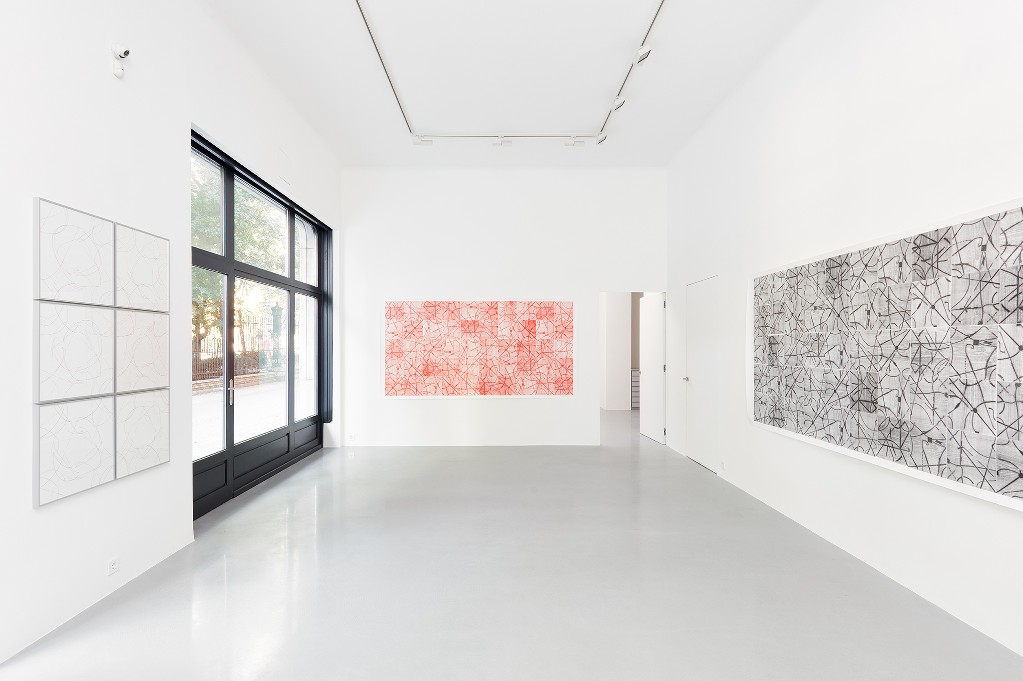 Szíj Kamilla Vintage Galériában megrendezett kiállításán három nagyméretű, valamint egy kisebb lapokból álló szitanyomatát mutatja be, amelyeket az elmúlt egy évben készített. A szitanyomás technikájának felhasználásával készült, ugyanakkor egyedi munkák kiindulópontjai a hat különálló lap esetében ceruzarajzok, a másik három munka esetében pedig négy, hagyományosan a fametszés során használt fadúc volt. A dúcokról fényképek készültek – melynek eredményeként a munkákon nem csak a faragott vonalstruktúra, hanem a faanyag organikus mintázata is megjelenik – majd a digitális képek ezután fotóemulzió segítségével szitaszövetekre lettek levilágítva. A sziták különböző variációk szerint ismétlődő, egymás mellé való nyomtatásával végül két 3 méteres és egy 4,5 méteres monokróm mű készült el. A kisebb lapoknál a két színnel egymásra nyomtatott mintázatok rendszere szerint a pirossal szitázott vonalak változatlan állásúak, míg a feketével nyomottak variálódnak. A művek alapját Szíj Kamilla úgy alkotta meg, hogy a lapokat, illetve a táblákat négyzet alakban összeillesztette és az így kapott tömbre egy vonalat rajzolt, majd a modulokat összekeverte, és a középvonalakat összekötötte egy másik vonallal. Ezt a műveletet többször megismételte, ennek eredményeként a nyomóminták tetszőleges pozíciójú és állású egymás mellé illesztése ellenére is a szerteágazó vonalak az egységek szélein esetenként folytatólagosan egymáshoz kapcsolódnak.