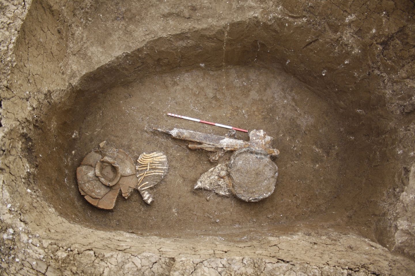 A képen a gyöngyösi kelta temetőben feltárt egyik harcos hamvasztásos temetkezése látható