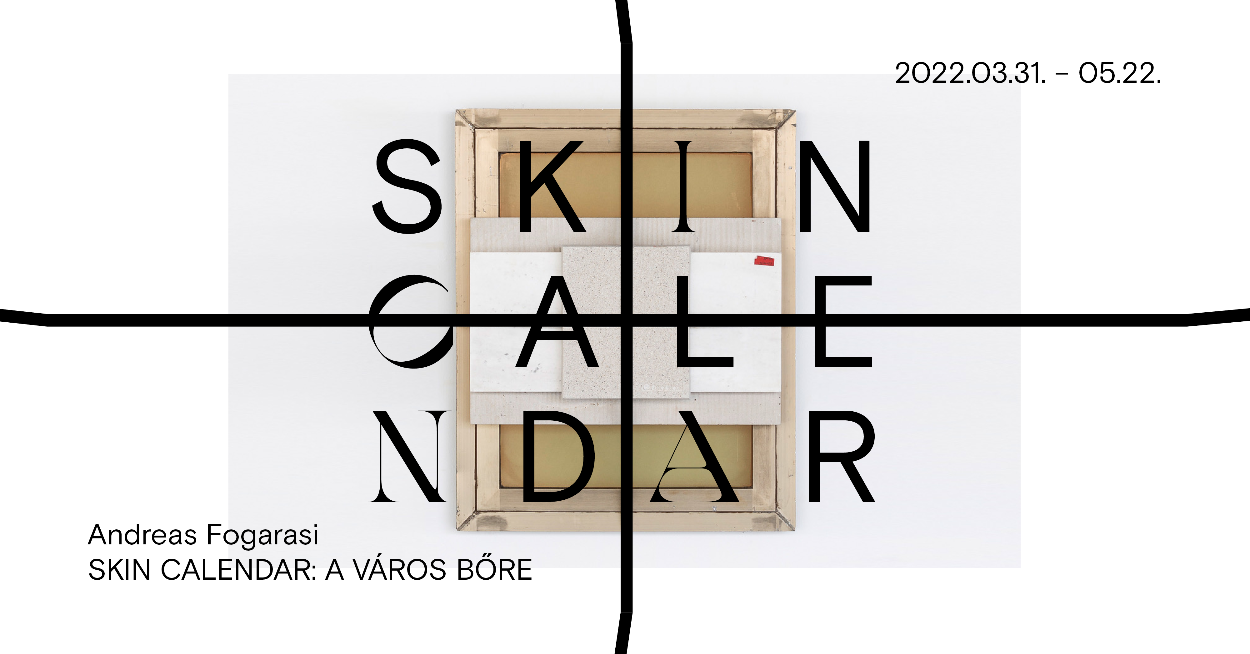 Andreas Fogarasi Skin Calendar – A város bőre című kiállítása egy hosszú távú vállalkozás első budapesti állomása. Közös városi emlékeink fragmentumait rajzolja térképre, teszi maradandóvá azzal, hogy nemrég lebontott épületek darabjait rendezi geometrikus absztrakt táblaképekké, kiegészítve azokkal az új anyagokkal, amelyek az átépített vagy új épület meghatározói. Az anyagokra koncentrálva Fogarasi archeológiai munkát végez, az eredmény mégis egy kortárs pozíció: a korábban a városszövet részét képző, olykor vitákkal övezve vagy épp észrevétlenül lebontott modern épületek anyagait összegyűjtve, majd a történeti kontextustól elemelve a helyek szikár, határozott karakterű portréját alkotja meg. A kiállításban a veszteség tudatosítása nélkülözi a melankóliát, de a kortárs urbanisztikai változások kritikai olvasatára ad lehetőséget.