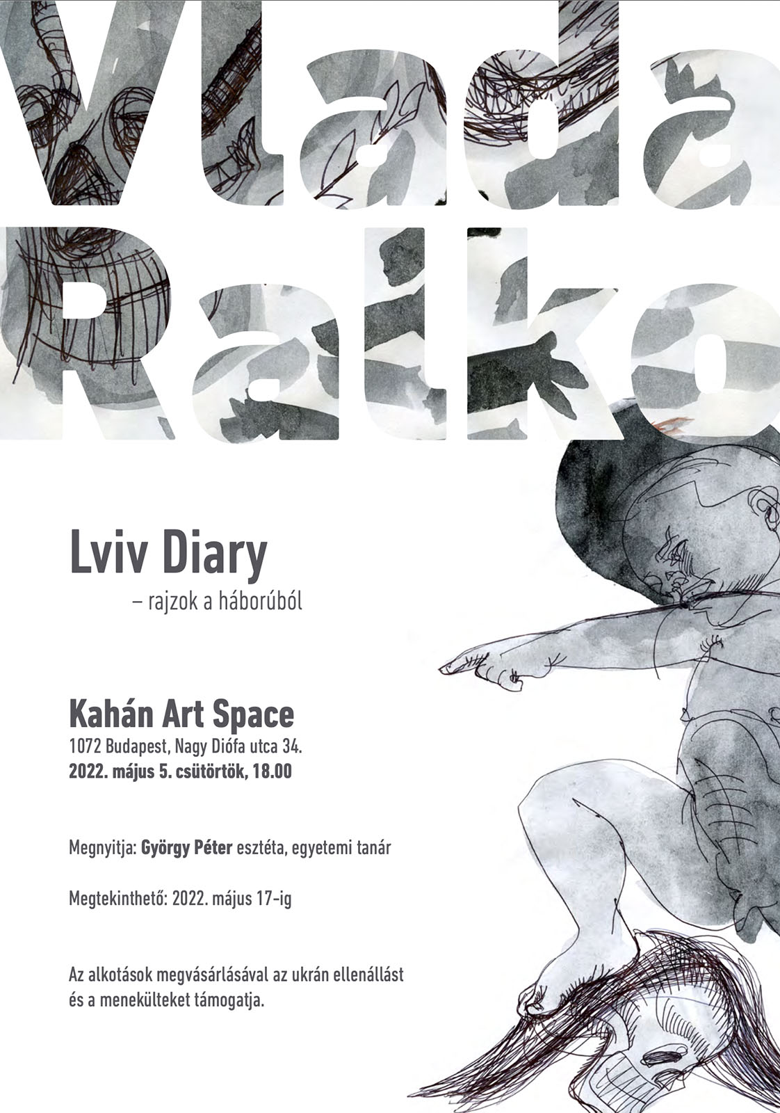 Vlada Ralko budapesti kiállításán a művész 64 rajzát mutatjuk be. Mivel menekülése során csupán néhány rajzát tudta magával vinni, ezért különösen fontos, hogy a Kahán Art Space kiállításán öt eredeti, a bombázások idején készített alkotása is látható. A többi munka kiemelkedő minőségű digitális glicée print, amiből egy-egy példány készült és Vlada Ralko saját kezűleg szignálta valamennyit. A képek a kiállítás során megvásárolhatóak, az értük befolyt pénzt Vlada Ralko azoknak az ukrán önkénteseknek ajánlja fel, akik az orosz agresszorok által hátrahagyott aknáktól tisztítják meg Ukrajna földjét.