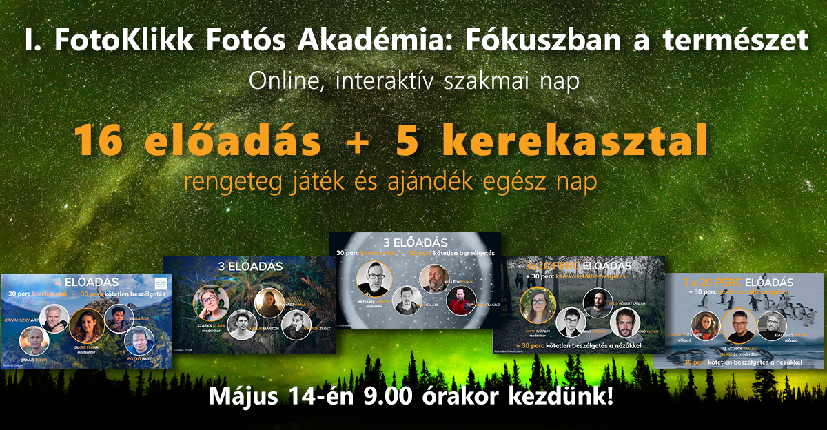 FotoKlikk Fotós Akadémia I. - Fókuszban a természet | Potyó Imre, Jakab Tibor, Li Gábor, Krivánszky Árpád, Kállai Márton, Balázs Zsolt, Bányász Anna, Dr. Kolláth Zoltán, Deim Balázs, Dr. Francsics László, Bácsi Róbert László, Ambrus Gergely, Zichó Viktor, Horvath Esther, Radisics Milán