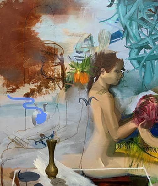 KALICZKA Patrícia Bizalomra képtelen című festménye már első látásra is túlmutat a két ember közötti kapcsolat határain.