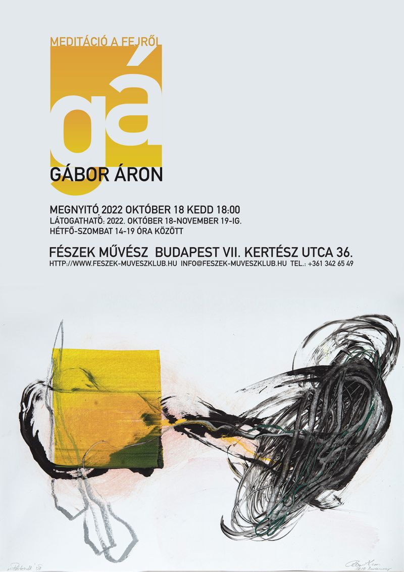 Gábor Áron nem először állít ki a Fészekben. A mostani kiállításán a legújabb, 2022-ben készült grafikai sorozata kapja a legnagyobb hangsúlyt. Badacsonytomaji műtermében készült két nagy sorozata, a Meditáció a fejről és a Párbeszéd kapják a főszerepet mostani kiállításán. Ehhez társul a legújabb, nagy méretekben készült festménye, melyek ugyanezt a vonulatot sokkal nagyobb léptékben jelenítik meg.