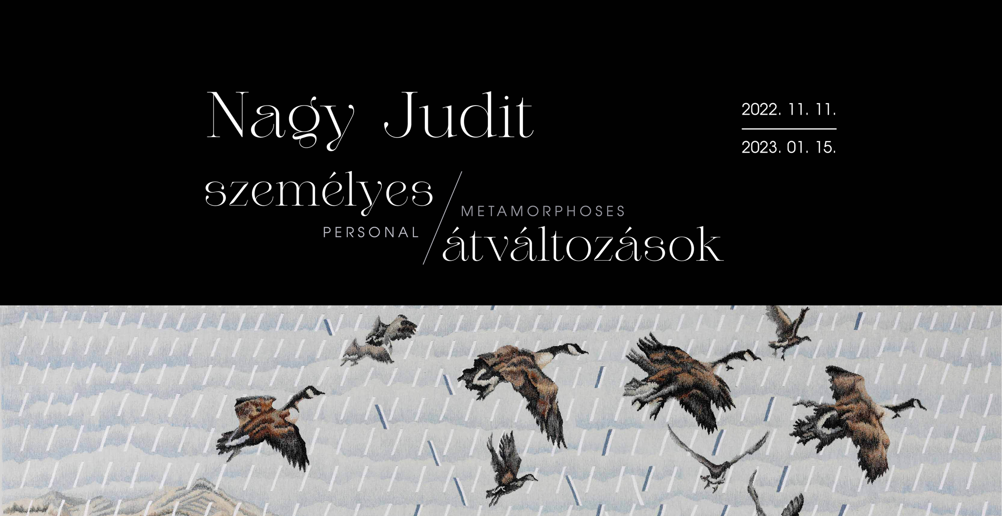 Nagy Judit műcsarnoki kiállításának címe: Személyes átváltozások. Nem életmű-tárlat, inkább leltár a most-nak. Személyes, mert minden műben ott vannak az érzések, gondolatok, az élet munkával töltött órái. Átváltozások, mert alkotójuk tudatosan építi az útját, témái egymást folytatják, mindig új létállapotokat fednek fel, ahogy a természet lényei átváltoznak, valami újjá alakulnak át, ugyanakkor magukban hordozzák a korábbi állapotukat is, mint egy lepkévé váló hernyó, vagy az ősszel elszáradó falevél.A kiállításban szerepelnek a megvalósult kárpitok és az azokhoz kapcsolódó tervek,vázlatok, feltárva a különböző munkafázisok egymásra épülő folyamatát.