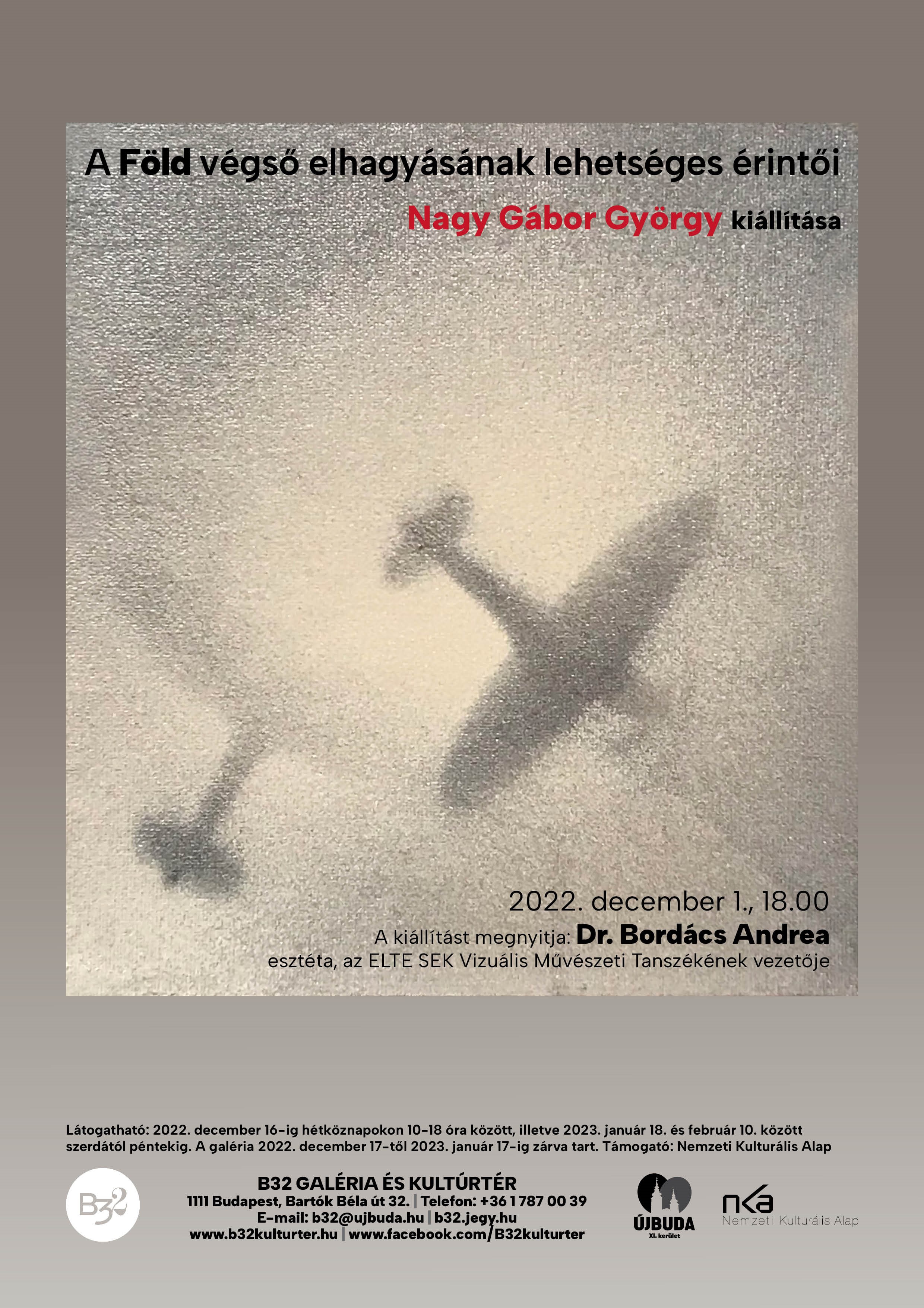 Megnyitó: 2022. december 1., csütörtök 18h – Dr. Bordács Andrea művészettörténész (ELTE SEK Vizuális Művészeti Tanszék, Szombathely vezetője)