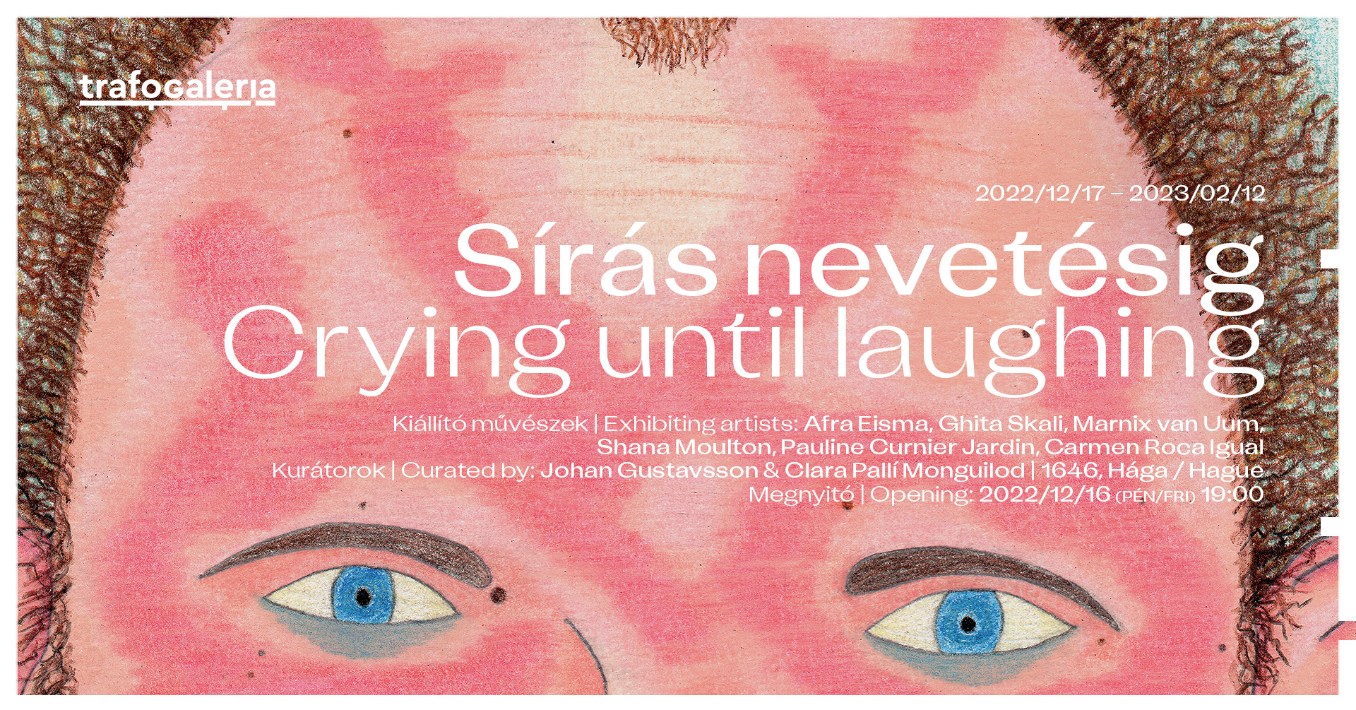 A Sírás nevetésig című kiállítás olyan művészek munkáit mutatja be, akik számára a humor katalizátorként szolgál ahhoz, hogy túl tudjanak lépni az adott körülményeken és normatív korlátokon. A kiállításon résztvevő művészek figyelme a hétköznapok egysíkúságától geopolitikai szintekig, egy egyszerű zavarba ejtő elpirulástól a nagyvállalatok testi egészségünkre és közérzetünkre gyakorolt hatásáig, a közösségi média nyomásától az életben való érvényesülés nyomasztó terhéig terjed.