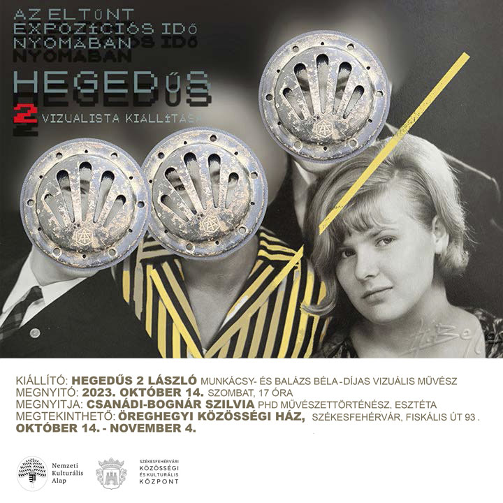 2023. október 14-én nyílik Hegedűs 2 László Munkácsy- és Balázs Béla díjas vizuális művész, Az eltűnt expozíciós idő nyomában című kiállítása a Székesfehérvári Közösségi és Kulturális Központban. A tárlat a múlt, ez eltűnt idő vizuális feldolgozását jeleníti meg. Egy ismeretlen családi fotóalbum képeinek transzformálásával, egy ismeretlen személy ismeretlen élettörténetének nyomait mutatja be a kiállítási teret betöltő periodikus fázisképeivel. Valaki, valamikor, valahol. A képek lírai érzékenységgel, a hangok, színek, illatok, érzelmek vizuális képekbe illesztésével azt a technikát követik, amit az elbeszélő irodalom klasszikusa, a kiállítás címével megidézett Marcel Proust is alkalmazott Az eltűnt idő nyomában c. regényében. Hegedűs 2 képköltészetének középpontjában egy nő élettörténete áll, egészen apró gyerekkorától érett, felnőtt koráig. Itt megszakad az élettörténet rögzítése és csupán az üres képsarkok jelzik, hogy a történet nem az utolsó felvételnél ért véget. A folytatás lehetséges verzióit Hegedűs 2 a szemlélőre bízza.