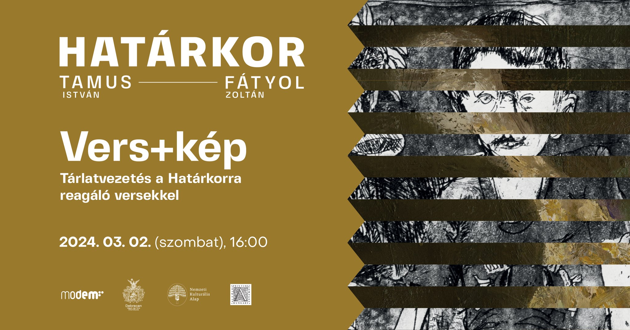 Tamus István grafikus- és Fátyol Zoltán képzőművész közös kiállítását ezúttal debreceni kötődésű költők értelmezésében ismerheti meg a közönség. A két emblematikus helyi alkotó egy-egy munkájára reagáló friss versét Bokor Judit, Gyarmati Dominik, Horváth Imre Olivér, Szegedi Eszter, Urbán Andrea és Ráday Zsófia olvassa fel, akik valamennyien a Versműhely tagjai. Hozzájuk csatlakozik Áfra János kurátor és Fátyol Zoltán képzőművész is, akik a kiállítás ideje alatt először és utoljára szólalnak meg költői minőségükben.