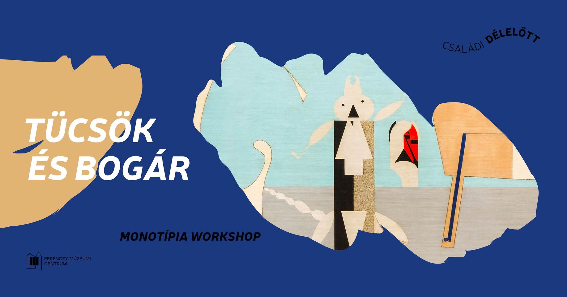 A kreatív múzeumi délelőttön színekkel és formákkal kísérletezünk. Megfigyeljük a műalkotások különleges felületeit, érdekes motívumait, jellegzetes színeit. Megismerjük a múzeumunk egyik legszínesebb, legjátékosabb, legszélesebb és leghíresebb festményét, Korniss Dezső Tücsöklakodalmát. A grafika és a festészet képi világát is megidéző monotípia technikájával alkotunk tücsköt, bogarat és megannyi apró élőlényt.