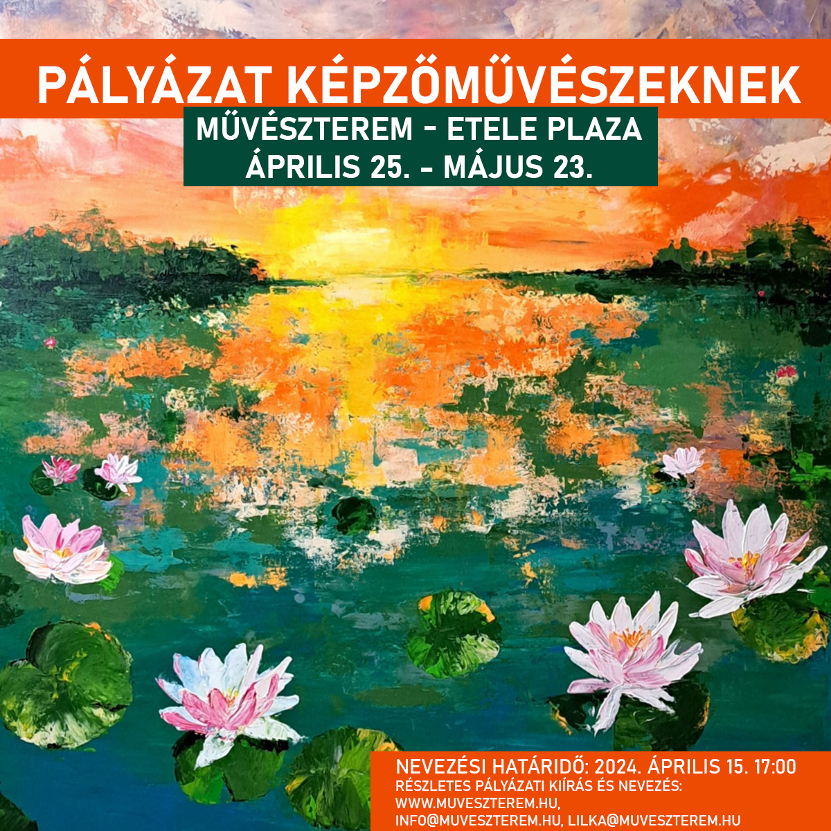 A kiállításra a MűvészTerem alkotóközösség regisztrált tagjai kedvezményesen pályázhatnak.