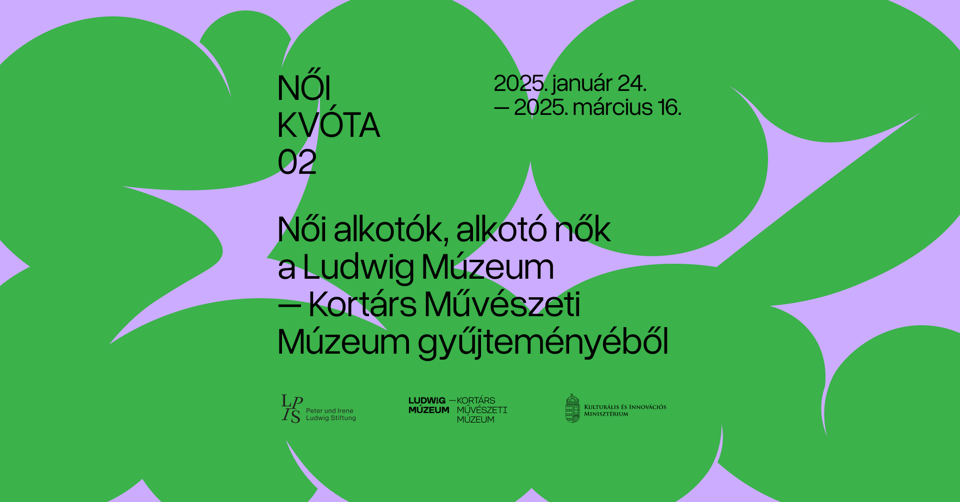 A 35 évvel ezelőtt alapított Ludwig Múzeum – Kortárs Művészeti Múzeum első alkalommal mutat be kizárólag női alkotók műveiből álló válogatást a gyűjteményéből. A kétrészes kiállítás első fejezetében elsősorban a női szerepekkel, illetve nők művészeti (ön)reprezentációjával foglalkoztunk, míg a második részben bemutatjuk a nők által választott műfajokat, témákat, illetve a nők művészeti teljesítményét és eredményeit az elmúlt fél évszázadban, a múzeumban őrzött műveiken keresztül.