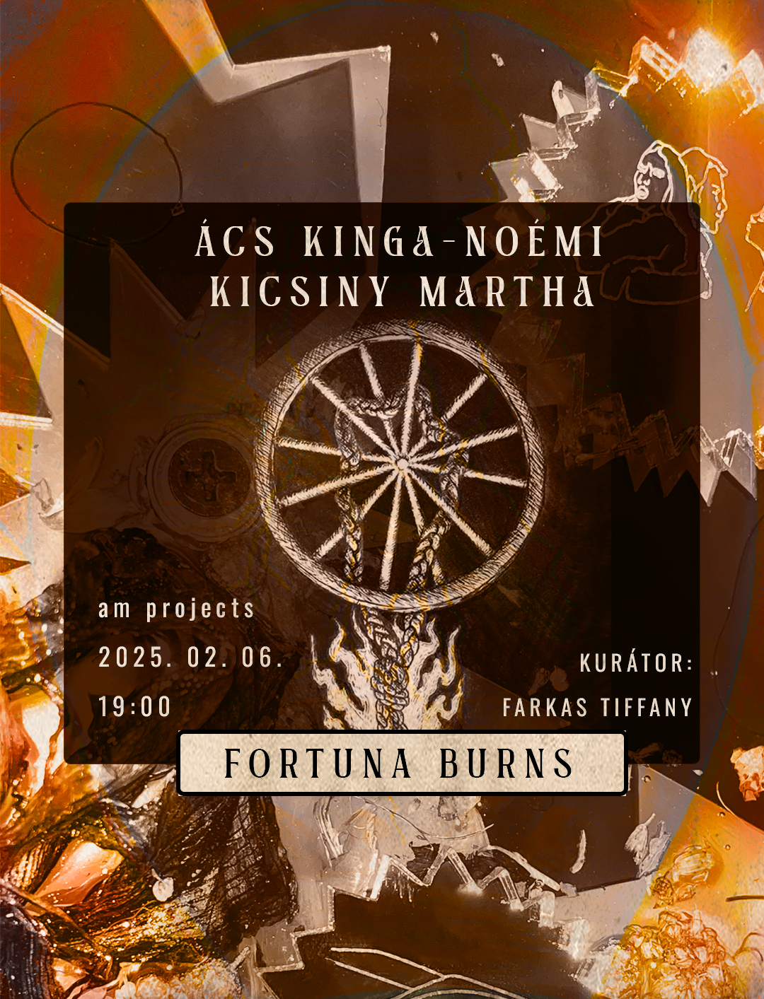 Ács Kinga-Noémi és Kicsiny Martha közös kiállításának központi szimbóluma a sorskerék, avagy Fortuna kereke, amelynek történelmi pozíciójára, reputációjára, jelentésére mindkét fiatal feltörekvő női alkotó kritikai perspektívából tekint rá. A Fortuna Burns című kiállítás arra a narratívatörésre helyezi a hangsúlyt, hogy a sorsszerűnek ítélt, előre elrendelt és berögzült kollektív mintázatok és normák helyét a nemi szerepekben, a társadalmi dinamikákban vagy a világba-vetett emberi mivoltunkban hogyan veszi át az egyéni felelősség és az individuum szabadsága, vagy az ember felé hatalmasodó (pl. természeti) erők.