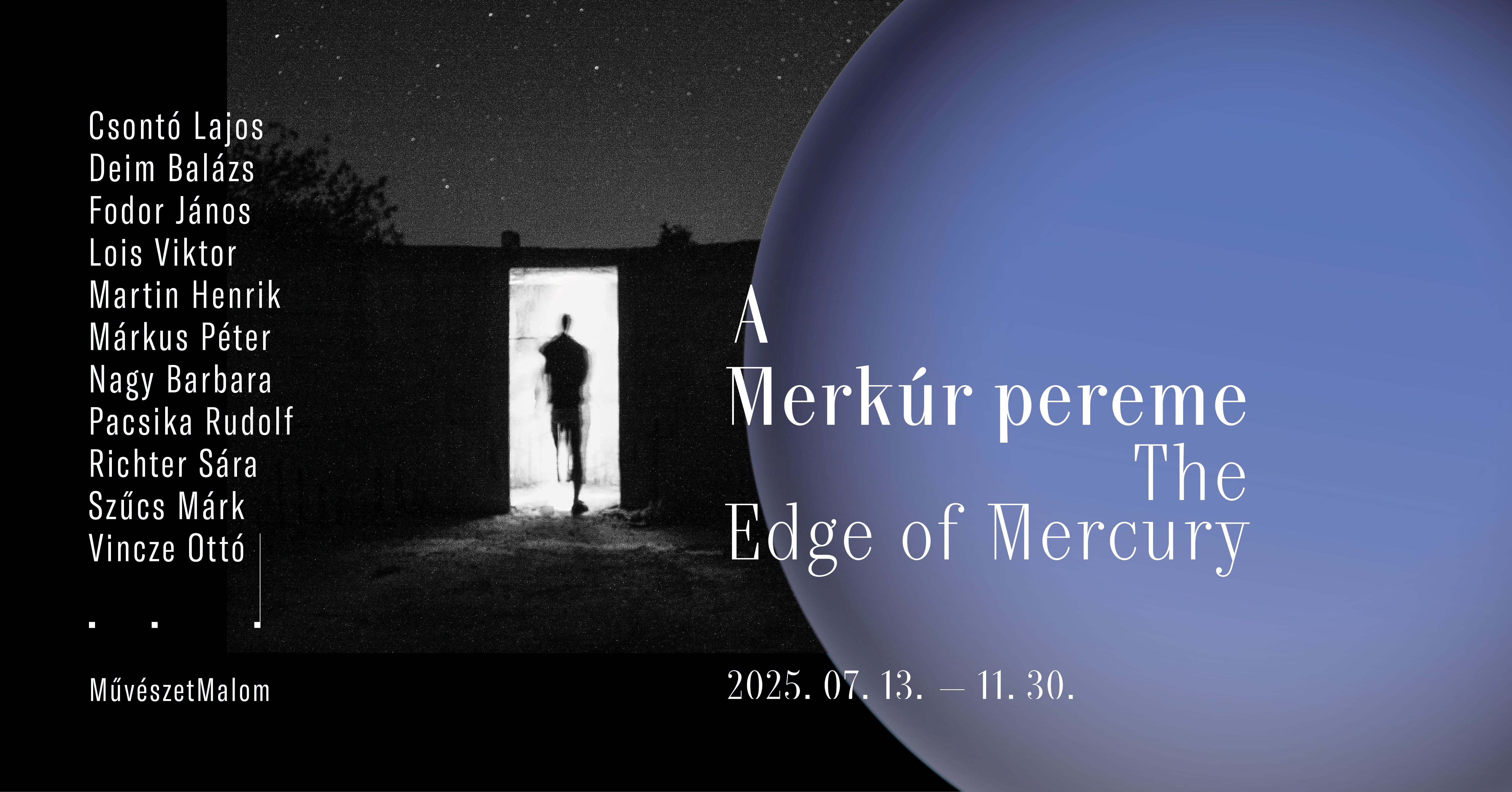 Egy titokzatos bolygó értelmezései festményeken, szobrokon, fotókon, hang- és videóinstallációkon keresztül. A Merkúr pereme címmel nyílik július 12-én a MűvészetMalomban Csontó Lajos, Deim Balázs, Fodor János, Lois Viktor, Martin Henrik, Márkus Péter, Nagy Barbara, Pacsika Rudolf, Richter Sára, Szűcs Márk és Vincze Ottó közös tárlata. A kiállításhoz kapcsolódva Lois Viktor különleges koncertet ad, megszólaltatva hangszerszobrát, és premier előtti vetítésen látható a róla készült portréfilm