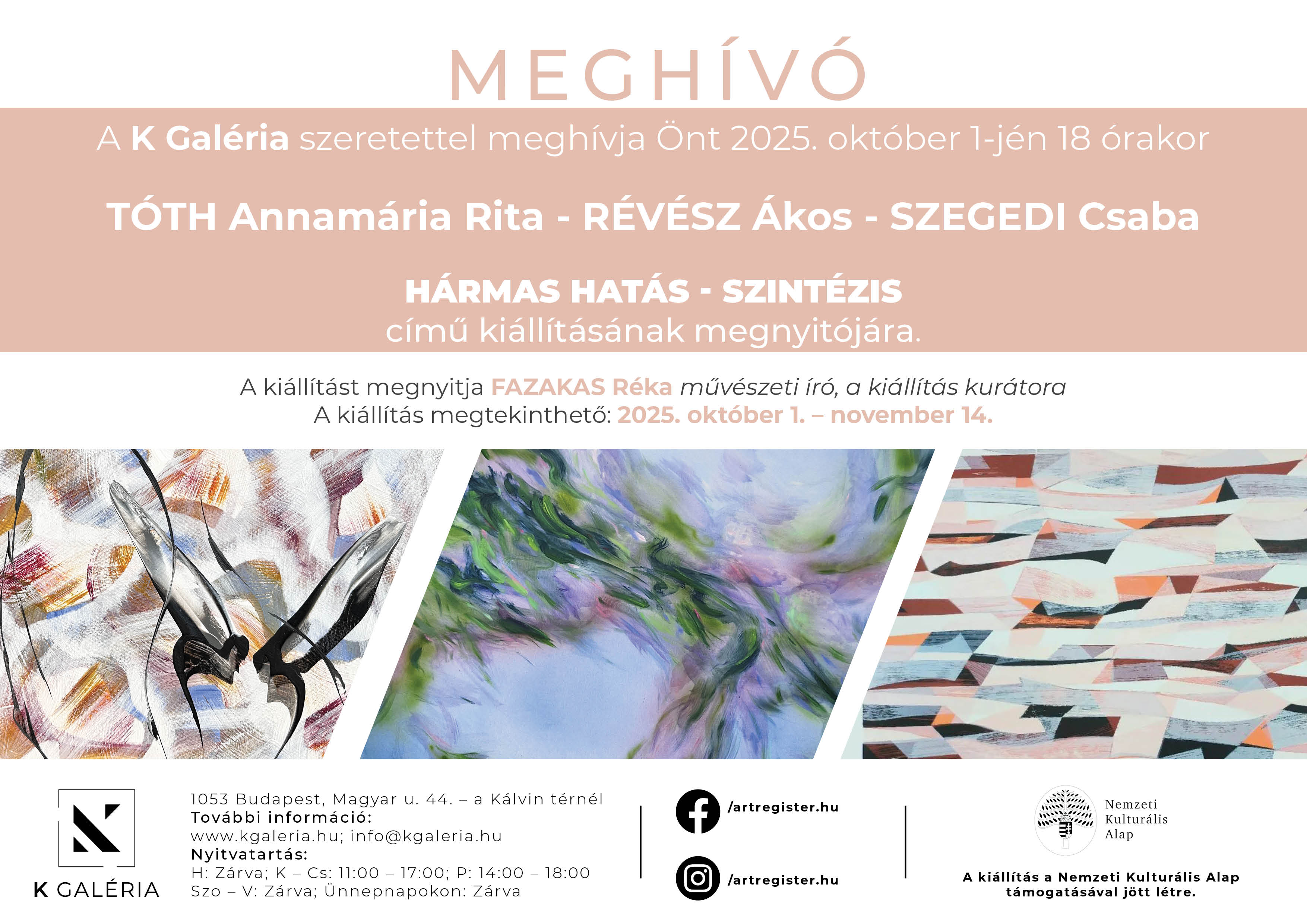 MEGNYITÓ - Hármas Hatás - SZINtézis c. kiállítás | TÓTH Annamária Rita, RÉVÉSZ Ákos, SZEGEDI Csaba