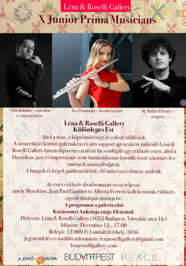 A Léna & Roselli Contemporary Art Gallery & Arts Support Center szeretettel meghívja Önt egy különleges, ünnepi hangulatú estére, ahol a zene, a képzőművészet és a divat egyedülálló módon találkozik.