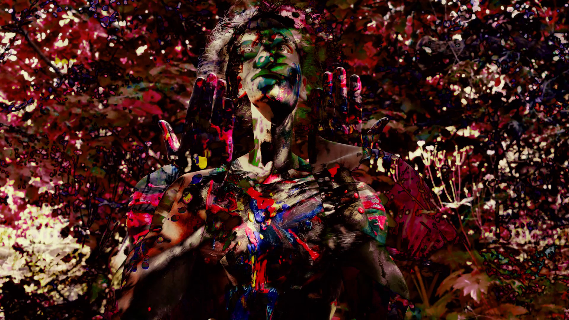 A huszadik századi művészet szakrális gyökér-keresésében fontos aranyszálként jelentkezik a kalligrafikus, gesztusokra épülő, testi nyomhagyásokon alapuló vonal. Itt olyan alkotókra gondolunk, mint Henri Michaux, Brion Gysin, Yves Klein, Antoni Tapies, Mark Tobey vagy Li Yuan-chia. A mágikus vagy szakrális gyökerek, a kozmikus ábécé felfejtése jellemzi ezt a vonalat, nem véletlen, hogy alkémisztikus/szellemi bekötöttség jellemzi ezen művészek többségét. Sorozatomban és videó/i/mban a közvetlen testi jelhagyást, mint univerzális signumot, szigillumot, synthemátát értelmezem, mely utat nyit a teremtő erők felé, a gesztusok immáron nem szubjektív lenyomatok, hanem jelenléttel feltöltött entitások. A mű készülése közben fontos volt a performativitás is, hiszen egy adott időben és egy személy végzi a nyomhagyást, melynek külön jelentősége van. A nyomhagyások közvetlenségükben érvényesülnek, nincs utólagos beavatkozás, ahogy a videó/k/ esetében is igyekeztem ezt a fajta közvetlenséget és személyességet megőrizni. Az anyagban Polaroidok, lenyomatok, festmények, videók és digitális printek is vannak.