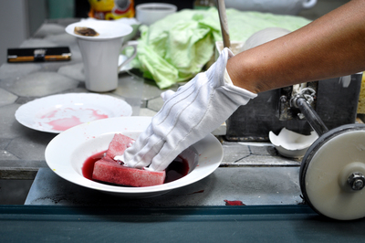 A 'Kéznyomok' étkészlet üzemi gyártósoron készült, úgy, hogy a kesztyűben dolgozó munkások kobalt-kloridba mártották az ujjaikat. Az érintésük nyoma szinte láthatatlan maradt egészen a kiégetésig, amikor a kobalt sötétkék színűre változott. A porcelán így megőrizte megmunkálója kezének érintését, feltárva az „emberi tényező” szerepét az ipari termelésben. A projekt egy keramikus és egy antropológus együttműködéséből született meg.
