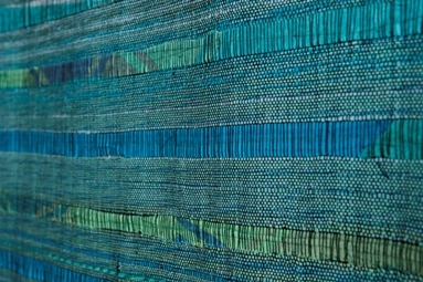 A címben szereplő „áthatás” arra utal, hogy a súlyos, szinte „fal”-szerű kárpitok mellett kiállítom az ugyanazzal az eszközzel készített, légiesen áttetsző, leheletfinom anyagaimat is.