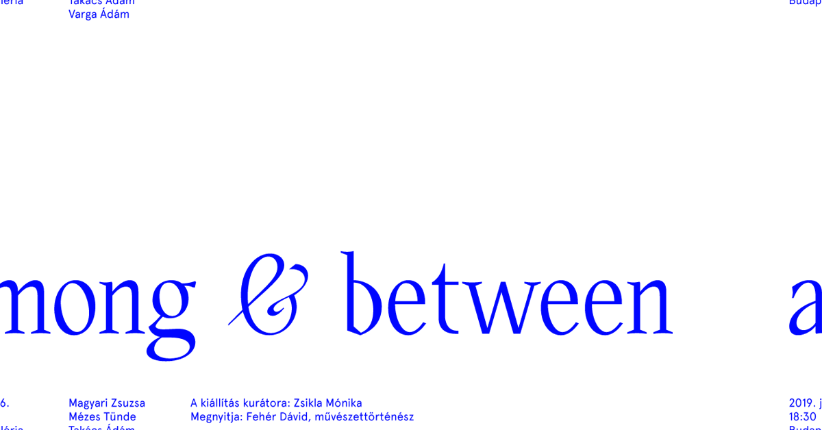 A Budapest Galéria évadzáró nyári kiállításán négy fiatal művész mutatkozik be. A munkáik közötti kohéziót és egyben a kiállítás tematikáját a tér „belakása”, a művek egymással folytatott párbeszéde és a befogadó-mű-tér hármasára adott reflexiók teremtik meg. Az alkotók a hétköznapi tárgyakból és jelenségekből kiindulva olyan tapasztalatokra és folyamatokra reflektálnak, mint a másolás során bekövetkező materiális átalakulás, a funkcionalitás és a funkcióvesztés közötti konfliktus, a jelentésvesztés folyamata, a folytonos formálódásban rejlő rugalmasság. A művek gyakran visszatérő motívuma a digitális szövegszerkesztés tipográfiai rendszere. A megjelenített motívumrendszerek együtteséből azonban nem olvasható ki koherens narratíva – a jelentés a művek között (among and between), a tárgyak körüli fizikai és diszkurzív térben jön létre.