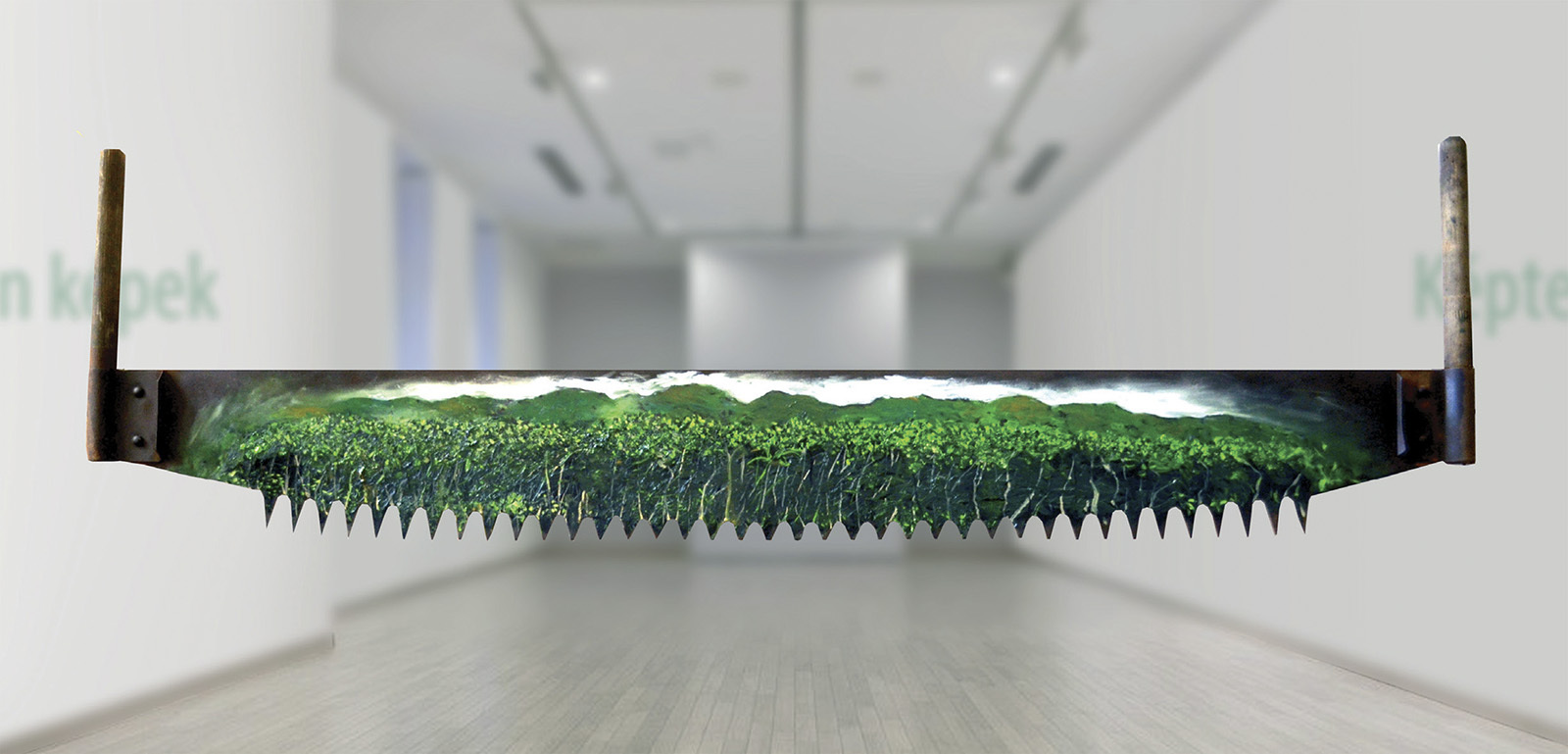 Tíz évvel ezelőtt személyes élménye volt a körülötte elterülő őserdő pusztulása, azóta foglalkozik környezetvédelemmel. A mezőgazdasági területekké, olajpálma- és ananászligetekké átalakított dzsungel hajótöröttjeként kezdett hozzá fekete ültetvény című sorozatához. Azóta a pusztítás már mindenki számára érzékelhető, globális problémává vált. Korábban, szatirikus optikáján keresztül társadalmi és politikai kérdések foglalkoztatták, 2008-tól azonban a környezetvédelem problémái dominálnak munkáiban. Baltanyélből visszanövő erdő, láncfűrészre festett tájképek; szimbólumok egy esetleges fordulat lehetőségre, remény a pusztítás megállítására. A thaiföldi műteremben 50 tájképen idéz meg egy paradicsomi hangulatot, melynek ugyanakkor egy kalligrafikus "fordítást" is ad. Kezdetben színesben, később fekete-fehérben hozta létre vizuális meditációit. A Várfok Galériában megnyíló kiállításra egy installációval is készül, "Üres szavak" címmel. Reménykedjünk, hogy az elhangzott szónoklatokat tettek követik.