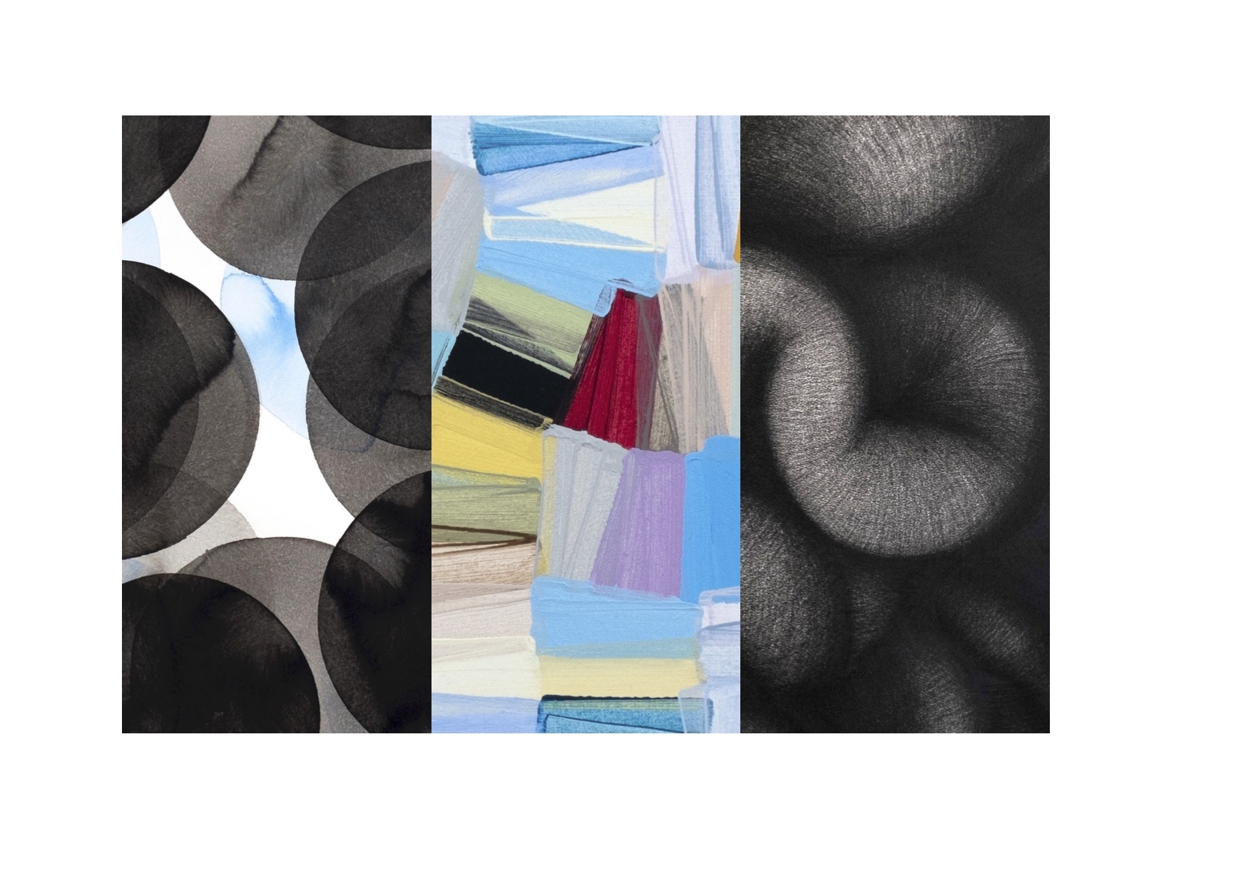 Kompozíciói általában egyetlen motívumból – pont, folt, ecsetnyom – épített textúrák, amelyeket részben megszabadít a fizikaiság terhétől, részben pedig plasztikussá testesít, pl. az ecsetnyom a képein a festés alapeleme, a kompozíció fő motívuma, egyúttal könnyed vagy erősebb nyomással létrehozott, aktualitással telített gesztus is. Alkotásaiban a szerkezetet tudatosan építi, a forma azonban szabadon alakul, és az illékonyság ellenére megőrzi az anyag és a mozgás fizikai minőségének és a jelenvalóságnak a képzetét és mozzanatait. Képeit Feldwork-nek nevezi, ami azt jelenti, hogy kozmikussá tágítja a tudat és az érzet behatárolt mezejét, és ahogyan Thomas Mark bécsi galerista mondta, misztikus terekké alakítja. A kiállításon néhány fotó, tus- és szénrajz mellett 20 festmény kerül bemutatásra.