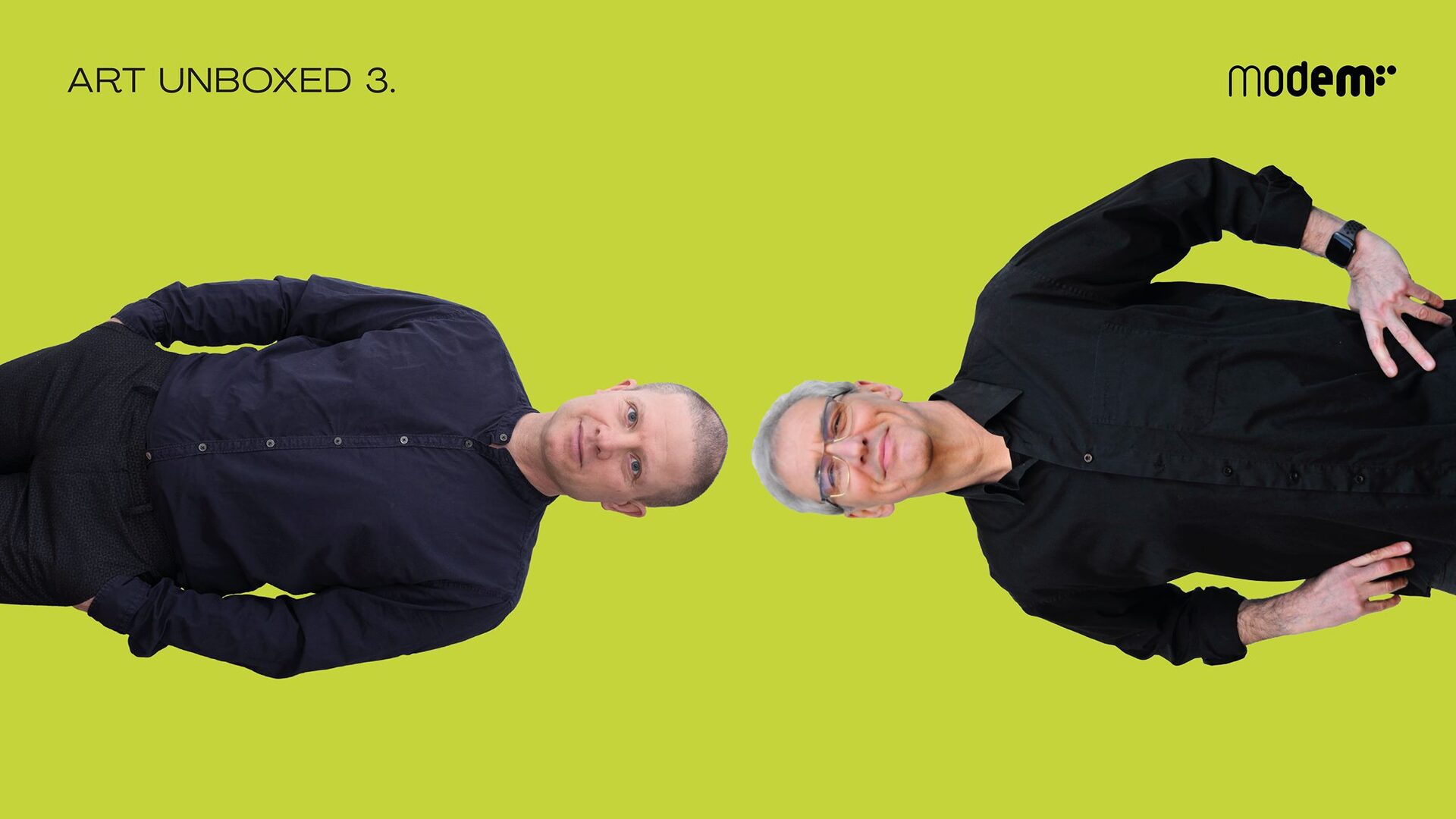 Vicces sztori, Bevésődés, Kis magyar pornográfia, Családi okok miatt, Mindenütt jó,de... Art unboxed - ezúttal a Modem két, rendszeresen visszatérő művészével, akik a művészeti központ 2006-os nyitása óta számos tárlaton és Modem-projektben részt vettek, olykor együtt is. Csontó Lajos már-már házigazdának számít egyes programjainkon, a művésztelep vezetőjeként éveken át töltötte nálunk a nyarak egy részét, miközben a Modem életében tulajdonképpen a kezdetektől fogva jelen van mint kiállító művész is. Vicces sztorival, "testbeszéddel", de tervezőgrafikai formavilággal és ellenállással egyaránt szerepelt már a tereinkben. Pettendi Szabó Péter főként az utóbbi években vált gyakori vendéggé, elsősorban személyes történetekkel és családi okokkal foglalkozó projektjeink részeseként. A Debreceni Nemzetközi Művésztelep tagjaként pedig - Csontó Lajossal együtt - a bevésődés fogalmát járták körül néhány évvel ezelőtt a Modem égisze alatt. Február 5-én, pénteken 17 órától egy-egy alkotásukat, de főként életüket és munkásságukat próbáljuk meg kicsomagolni némi személyes mondandóval kiegészítve, a szigorúan szakmai témákat is megelőzve. A beszélgetőpartner ezen a héten ismét Süli-Zakar Szabolcs és Koroknai Edit, a program pedig a Modem facebook oldalán mindenki számára követhető. És ingyenes, de köszönettel vesszük, ha jelképes összegű Modem-jeggyel minél többen támogatják a munkánkat. A támogatójegy (200 forintos áron) elérhető az alábbi linken: https://modemart.jegy.hu/program/modem-jegy-121553