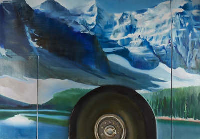 Ám a festményein megjelenő tájak mindig másodlagosak, tükröződések, kép a képben motívumok, vagy digitális glitch által torzítottak, miáltal többes jelentéssel bírnak, túlmutatnak a valóság leképezésén.