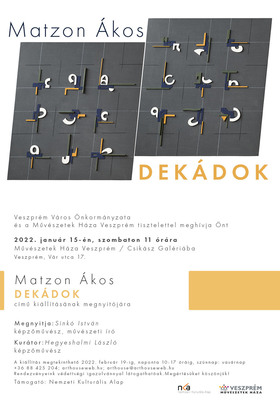 Matzon Ákos művészi pályáját tízéves periódusokra, dekádokra felosztva állítottuk össze a kiállításon bemutatott műveket.