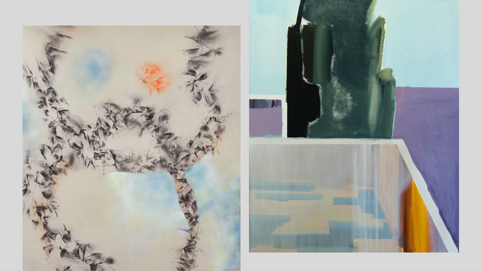 Koszorús Rita a festészeti eszközök mellett a kollázs, a ragasztás technikáját alkalmazva hozza létre geometrikus absztrakt munkáit, elmozdulva a térbeliség felé, amely alkotások gondolati hátterében a dadaizmus áll. Dóra Ádám elsősorban festészeti kérdésekre keresi a választ, az absztrahált formák kidolgozatlansága, esetlegessége és a gesztusszerű ábrázolásmód a hangsúlyosabb; festőibb, oldottabb megoldások jellemzik művészetét.