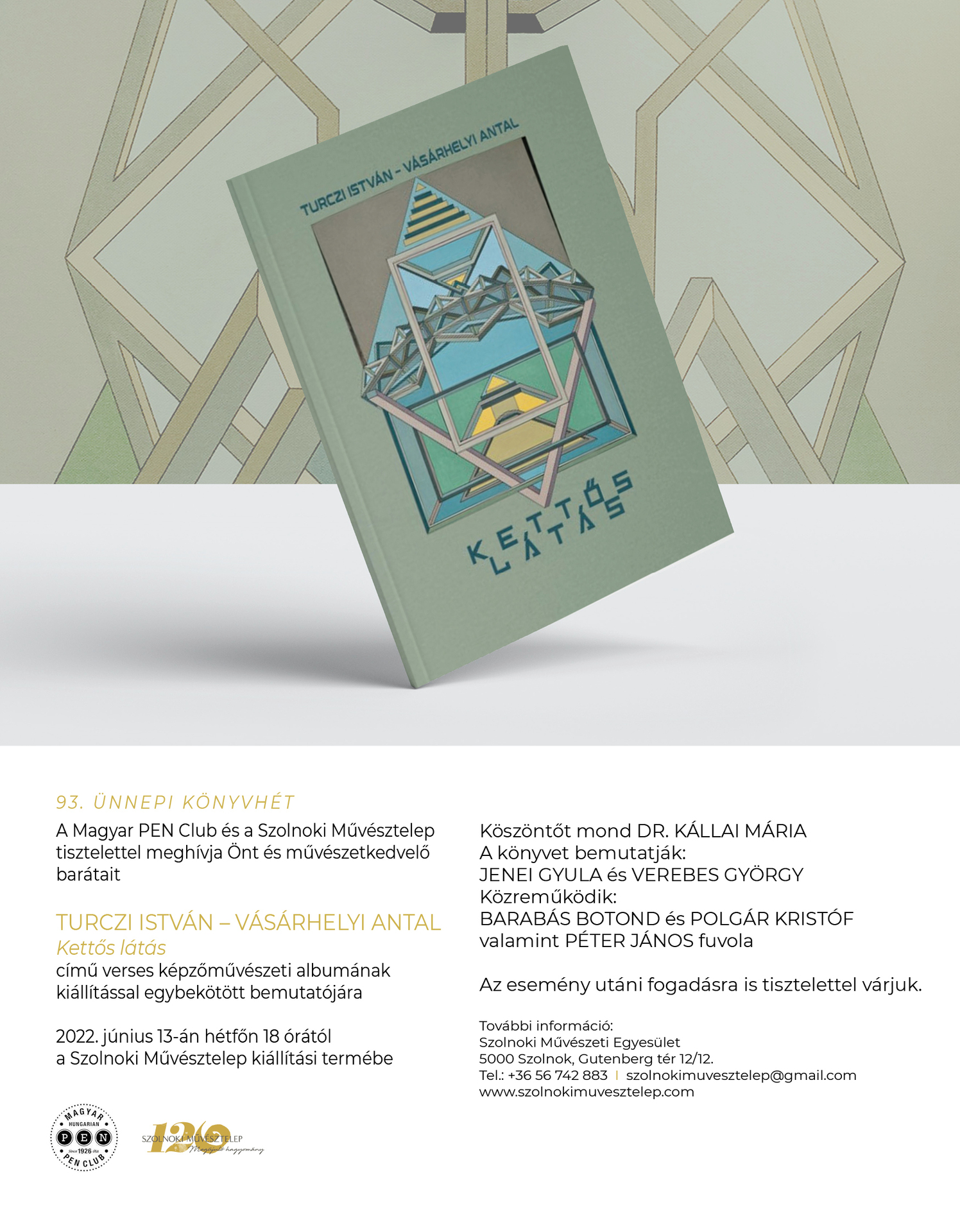 A Magyar PEN Club és a Szolnoki Művésztelep a 93. Ünnepi Könyvhét alkalmából tisztelettel meghívja Önt és művészetkedvelő barátait