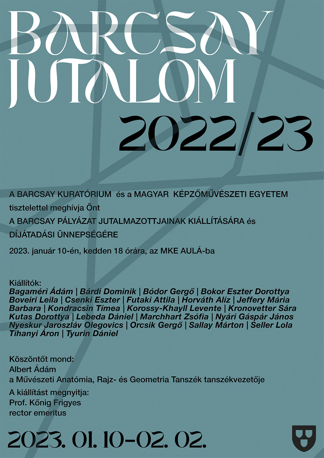 A Barcsay Kuratórium és a Magyar Képzőművészeti Egyetem tisztelettel meghívja Önt a