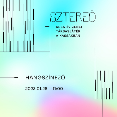 A múzeumi kiállítás elsősorban vizuális médium, míg a zene akusztikai műfaj, de közös bennük például a térbeliség, legyen szó a műtárgyak elrendezéséről, a befogadás módjáról, a hang terjedéséről vagy forrásáról. Ez a párhuzam inspirálta a Sztereó – tárlatvezetés két (vagy több) hangra címen indított sorozatunkat, melyben az elkövetkező hónapok során különböző szakterületekről érkező vendégelőadóinkkal közösen gondolkodunk az új zenei törekvésekről, a Hangszínek – Új zene a történeti avantgárdban című új időszaki kiállításunkban felvetett kérdésekről.