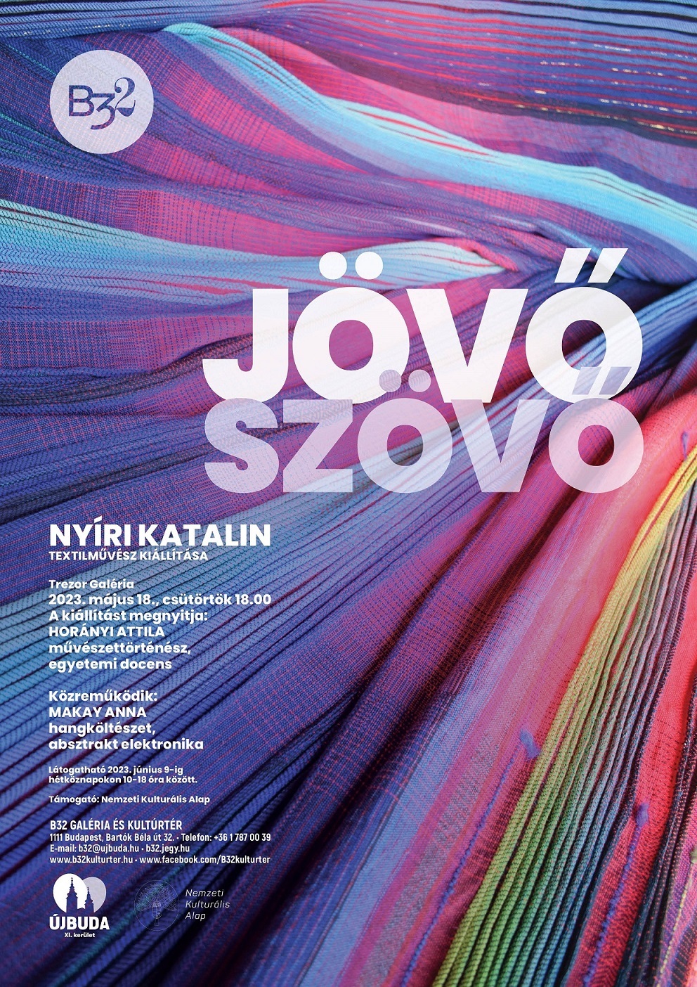 Nyíri Katalin kéziszövéssel foglalkozó textilművész, aki a maga készítette szövetekből faliszőnyegeket, ruhadarabokat, öltözékkiegészítőket, textilékszereket és egyedi tárgyakat hoz létre. A kéziszövéssel kapcsolatos tapasztalatai összegzéseként olyan kiállítást álmodott meg a Trezor Galériába, melyben a szövőszékéről ömlő „textilfolyam” az adott teremben kap értelmet: tagolja, berendezi, áthangolja annak terét, „felöltözteti” csupasz falait. A síkban és három dimenzióban mozgó, térben csavarodó textilfelületek nem csak a szövésben rejlő új lehetőségek széles skáláját mutatják fel, arról is képet adnak, hogy ezek a szövetvariációk hogyan jelenhetnek meg öltözékként. Makacsul bízva e több ezer éves mesterség jövőjében.