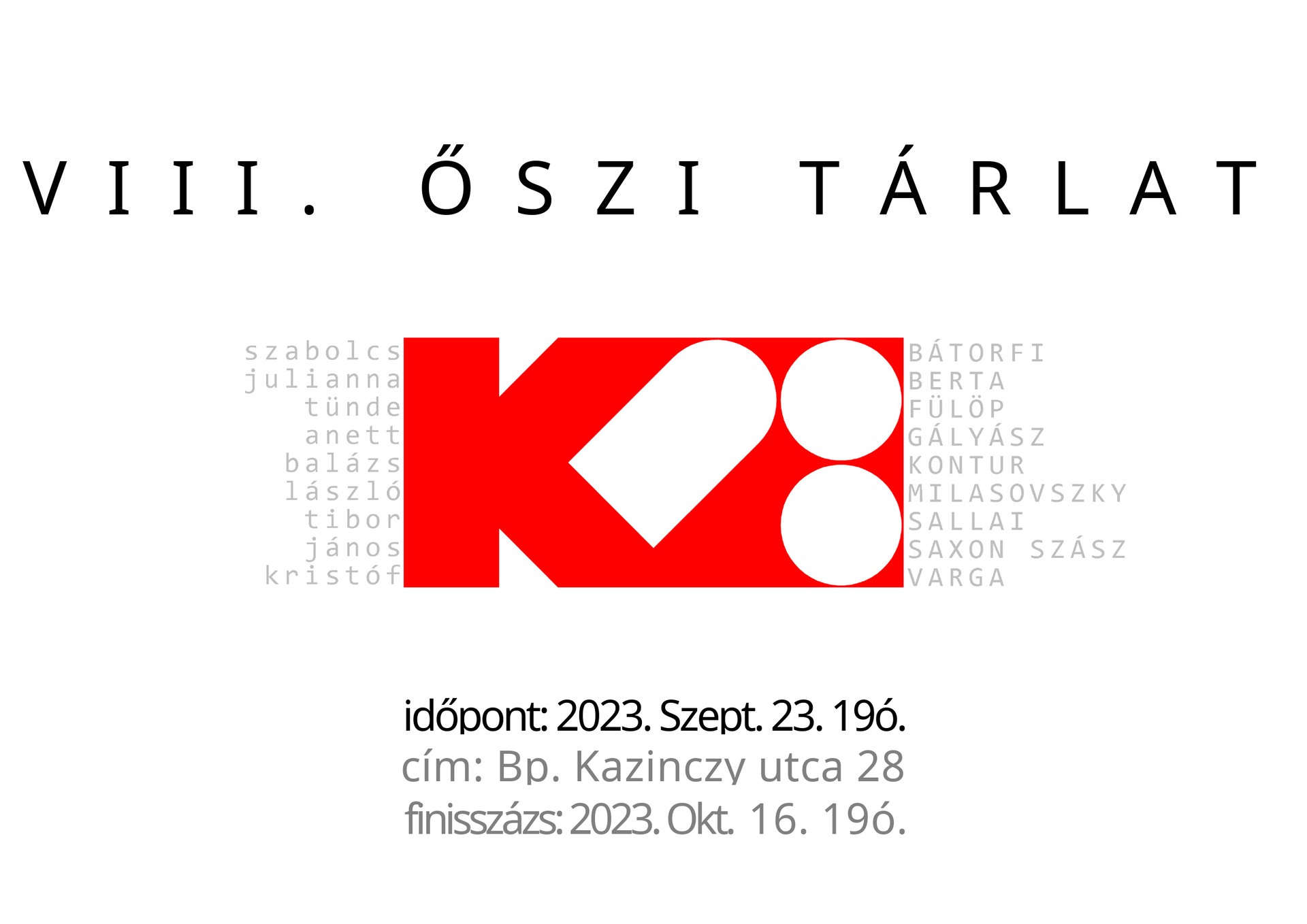 helyszín: K28 Galéria, Budapest, 7.ker. Kazinczy utca 28.